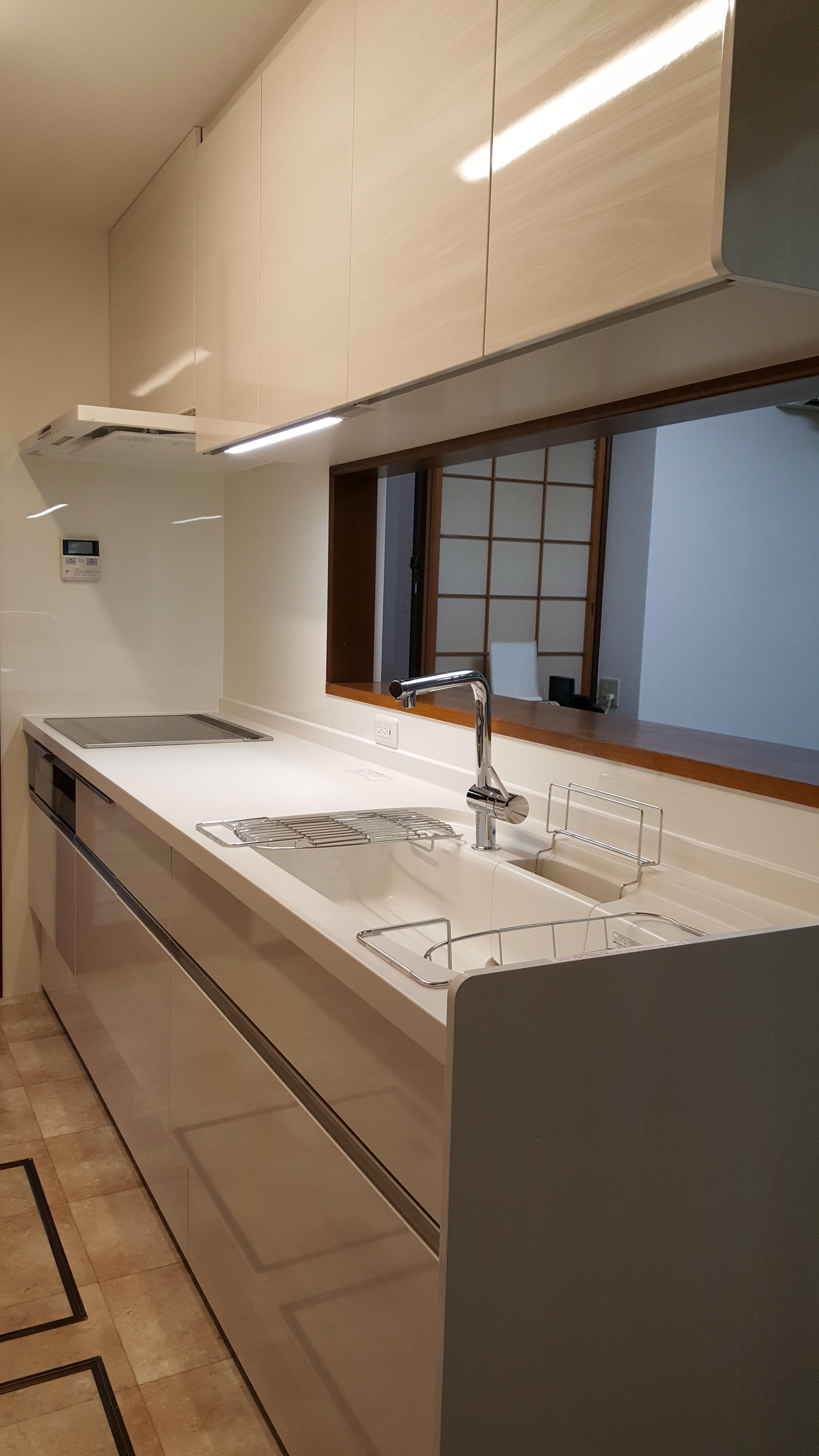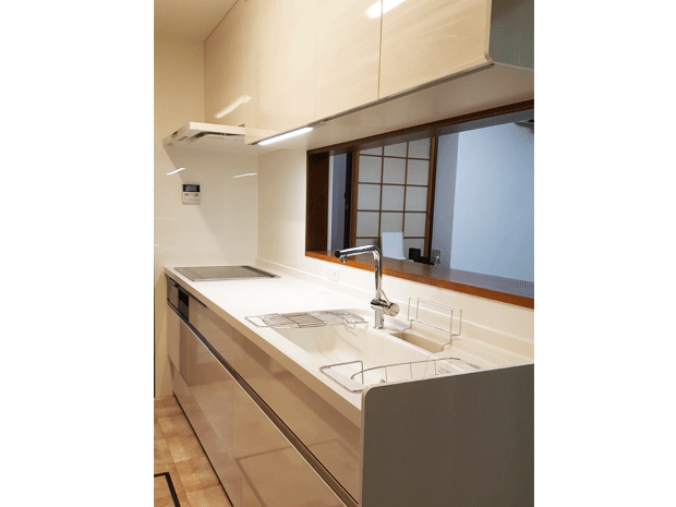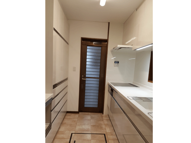 キッチンの使い勝手とお手入れにお悩みだったH様。キッチン&カップボード共に、LIXILのアレスタをご剤用いただきました。開き戸で奥の物が取りづらかった収納が、引き出しになり奥の物が取りやすくなりました。カップボードは奥様こだわりの全面パネルタイプ。落ち着きのある白色を基調とし、床材もキッチンに合わせて変えたので、全体的に明るく優しい空間になりました。キッチンのお手入れが楽になった!!と大変喜んでいただけました。