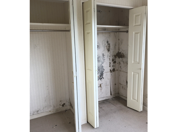 カビの発生した壁のリフォーム依頼を頂きました。現場を確認したところ、RC壁の北、東側の壁からカビは察製していました。RC壁、窓の断熱効果が足りずに結露が発生し、カビが繁殖してしまったようです。カビの繁殖してしまった壁材を撤去し、既設の断熱材(吹付発砲ウレタン)は除菌しそのまま残し、内側に断熱材を設置した壁を建て込み二重の断熱となるようにしました。ペアガラスの内側(インプラス)を設置しこちらも断熱効果をアップ。
