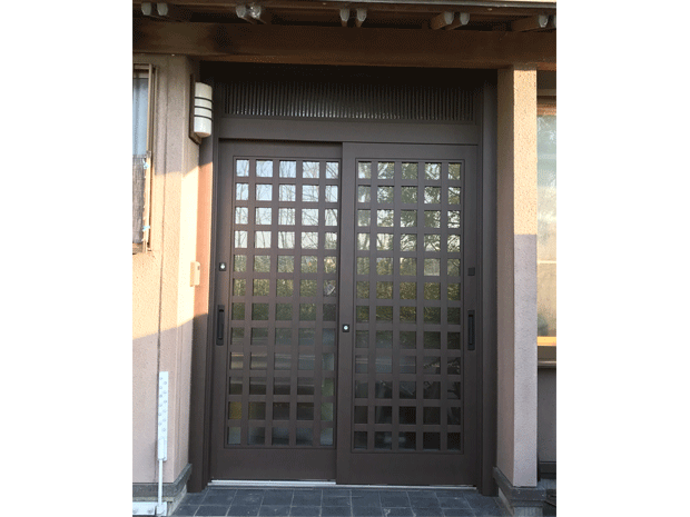 毎年冬になると玄関に風が当たってとても寒いんです、とご相談を受けました。LIXIL『リシェント』に施工日数1日で玄関ドアを取替えさせていただきました。気密性も向上することながら、ガラス面もペアガラス仕様にすることで断熱性能の向上も期待できます!!色味は柿渋色で落ち着いた雰囲気になりました♪