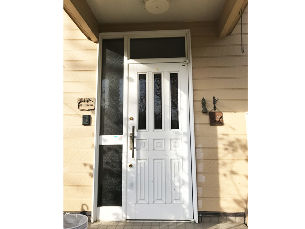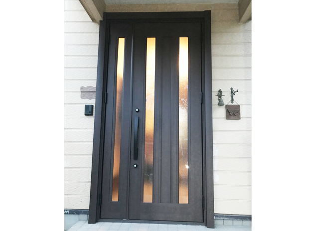 玄関、勝手口の経年劣化からお取替えのご依頼をいただきました。加えて騒音の対策として、インプラスを8か所設置させていただきました。防音、断熱性共に効果を実感していただくことができ、1日で施工を完了できたことにも大変ご満足していただくことができました。柿渋調の玄関扉でガラリと雰囲気が変わり、スタイリッシュに仕上がりました。
