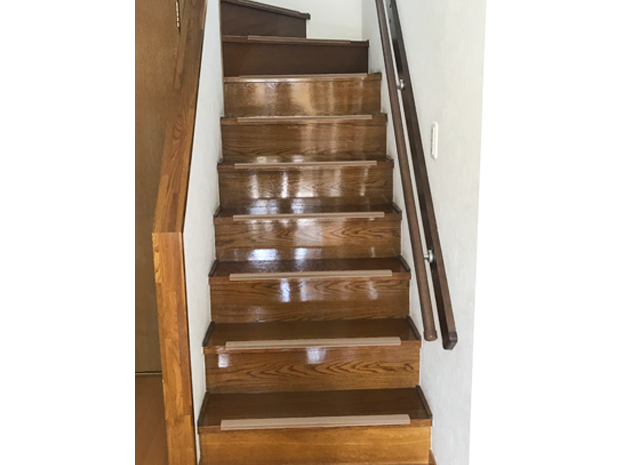 開き戸では、開閉時に扉が邪魔になるので前後の移動が必要になり、ふらつき転倒してしまう恐れがありました。そこで、LIXILの「ラシッサS」という商品の引戸をご提案させていただきました。既設の扉より大きくしましたが扉の開閉は軽くなり、動線も良くなりました。扉の色を壁紙と合わせ、磨りガラスにすることでスタイリッシュなデザインになり、プライバシーも守られるようになりました。また、階段に滑り止めをつけることで老後の生活に備えました。お客様にも大変満足していただくことができました。引戸にするにはスペースが必要になりますので、今回はコンセントやスイッチの位置を変えることで以前より大きな扉を付けることができました。