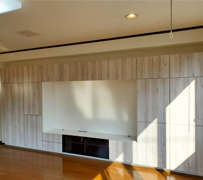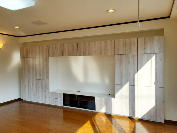ご家族のご入居にあたり、「収納量に不安がある…」とのことでしたので収納が増えてなおかつ見た目もおしゃれな商品をご提案させていただきました。LIXILの「ヴィータス」は商品の組み合わせ次第でテレビ台としても使え、壁一面を収納にすることができます。その他にも、クローゼットで繋がっていたお子様の部屋に間仕切り壁を設置し、プライベートな空間が必要になる将来に備えて、部屋を分けました。