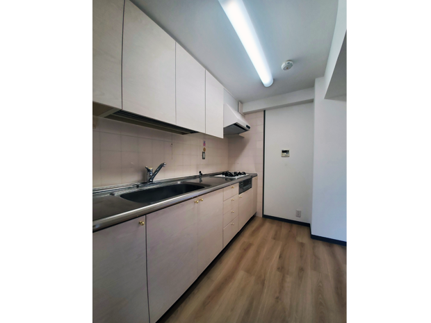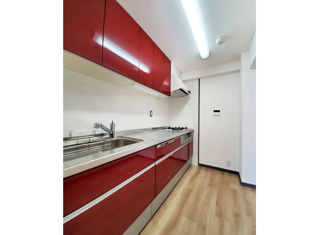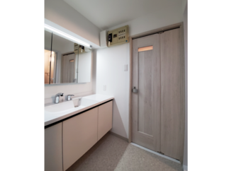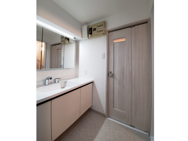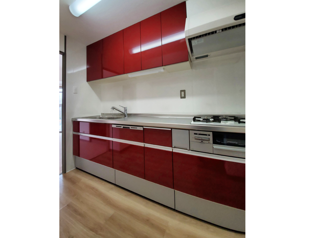 ご購入された中古マンション。当初はお風呂とトイレのみの取替えをご希望でしたが、お嬢様お二人のご要望の三面鏡の洗面化粧台も加わり、最終的には「食洗機が欲しいな…」と迷われていたキッチンも取替えさせていただくことになりました。すべてLIXIL製品をご採用でお風呂は、最上級グレードの「スパージュ」、洗面化粧台は、壁から壁までのオーダーメイドで作れる「ルミシス」、キッチンは、深みのある赤が華やかな「シエラ」、トイレは、選べる組み合わせ便器の「アメージュZ」採用いただきました。工事期間は1.5週間でした。