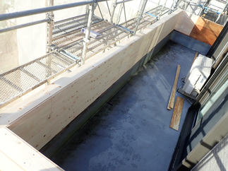 バルコニーの部分の外壁に膨れがあり、下地が傷んでいる可能性があったため、サイディングをはがすと、一部下地が悪くなっていました。そのため、下地がカビて腐食している部分を取り除きつつ下地補強をし、新たなサイディングを貼りました。