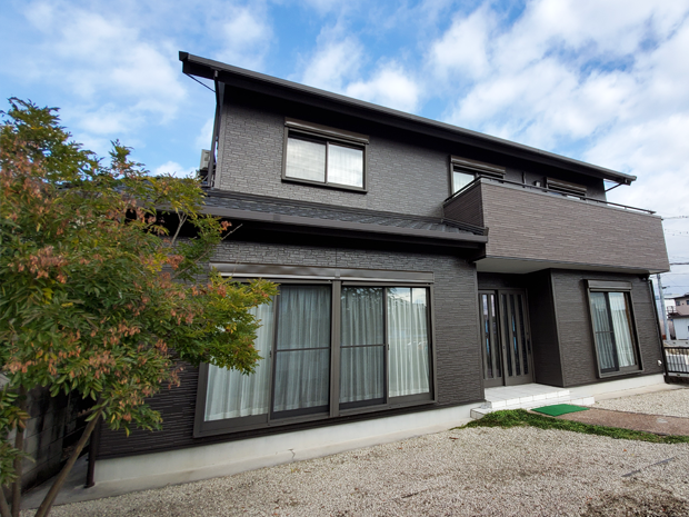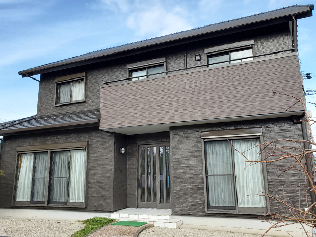 既設のブラウンの窓に合わせ、新しいサイディングと塗装を同じ色調のブラウンに統一することで、全体的に重厚感・高級感のあるお家に生まれ変わりました。