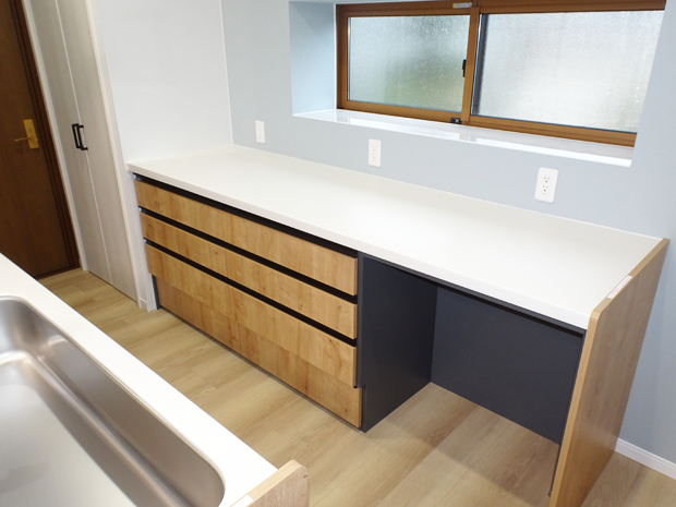 壁に面していたキッチンを対面へくるりとリフォーム。