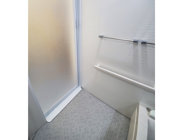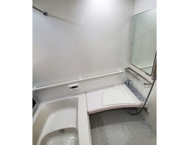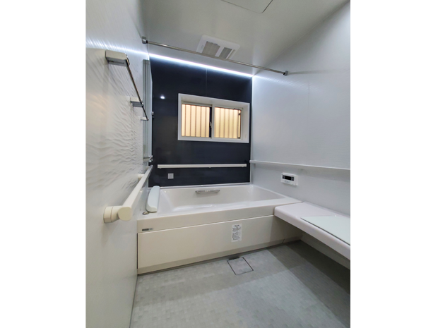 高齢のおばあ様にも安心してお風呂を楽しんでいただきたいとご要望いただき、LIXIL『スパージュ』にて施工させていただきました。浴室・浴槽の保温機能の向上のほか段差も解消され、浴室への扉は開閉しやすい片引き戸へと変わりました。また、手すりの設置とベンチカウンターのご利用で立ち座りの補助や浴槽の跨ぎも安全です♪