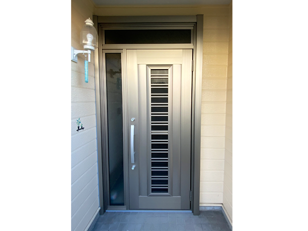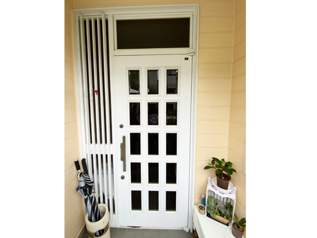 新しく取り付けた玄関は片手で扉を閉めたまま採風出来るものをご採用いただきました。