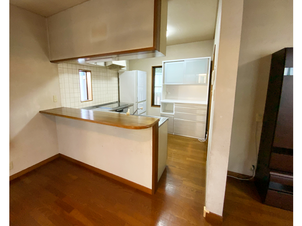 もともとL字型のキッチンから壁付けのI型キッチンへ変更し、キッチンとダイニングを阻んでいた垂れ壁をなくし開放的なキッチンへ生まれ変わりました。
