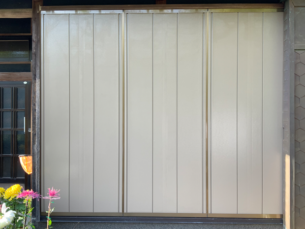 既設雨戸は昔ながらの風情を感じさせる木製の雨戸でした。経年による色落ちだけでなく表面がはがれてしまい、雨戸が戸袋からスムーズに出せないことにお客様はお悩みでした。