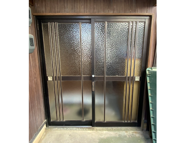 雨戸と玄関引戸の取り替え工事をさせていただきました。