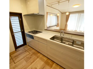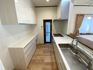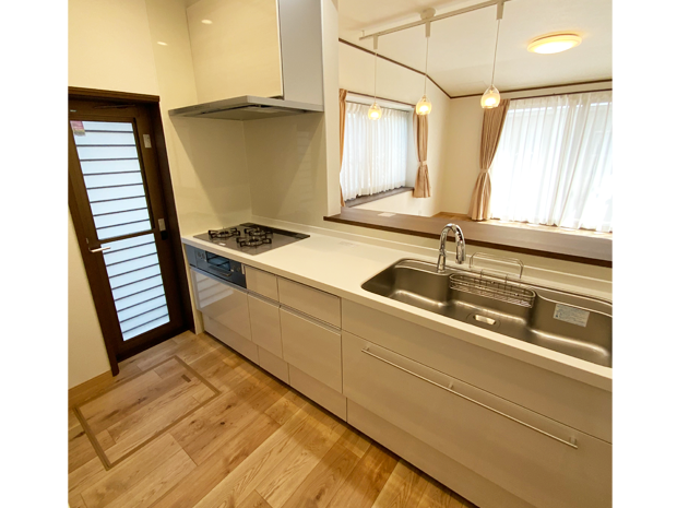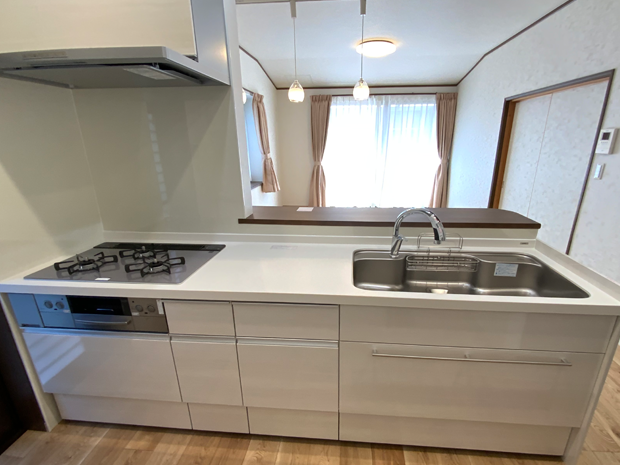 元々あった吊り戸をなくし、開放感のある対面キッチンにリフォーム。キッチンとカップボードはLIXIL商品「アレスタ」をご採用頂きました。