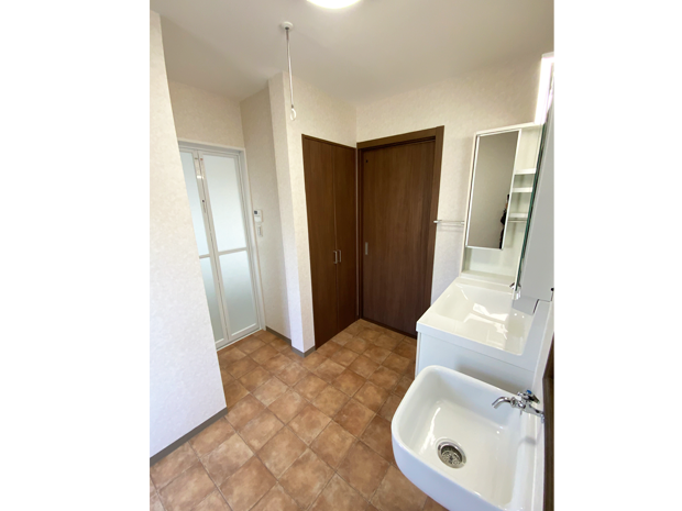 洗面化粧台『エルシィ』とお風呂『アライズMタイプ』へのリフォームをしました。浴室の面積を小さくしたため、そのスペースを洗面脱衣室の収納棚として活用する案をご提案させて頂きました。この収納が今後の日用品の保管にも一役買ってくれそうですね!スロップシンクにつきましても、既設の水道管がありましたので撤去することはせず、新しいものにお取替え致しました。リフォームでキレイになっただけでなく実用的な機能も向上しました!