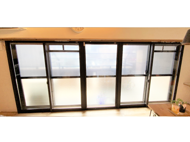 引違い窓-FIX窓-引違い窓が連結している大きく特殊な窓でしたが、内窓も同じ仕様で取り付けることが可能です。