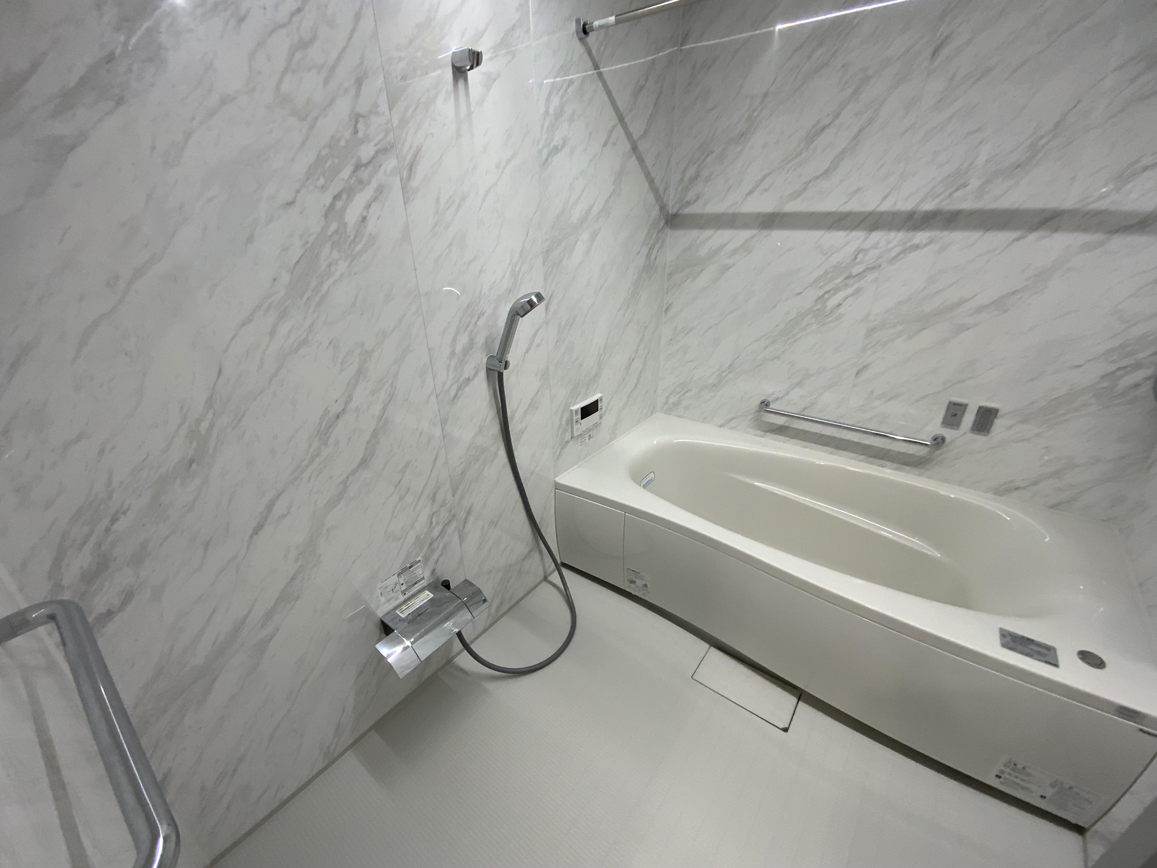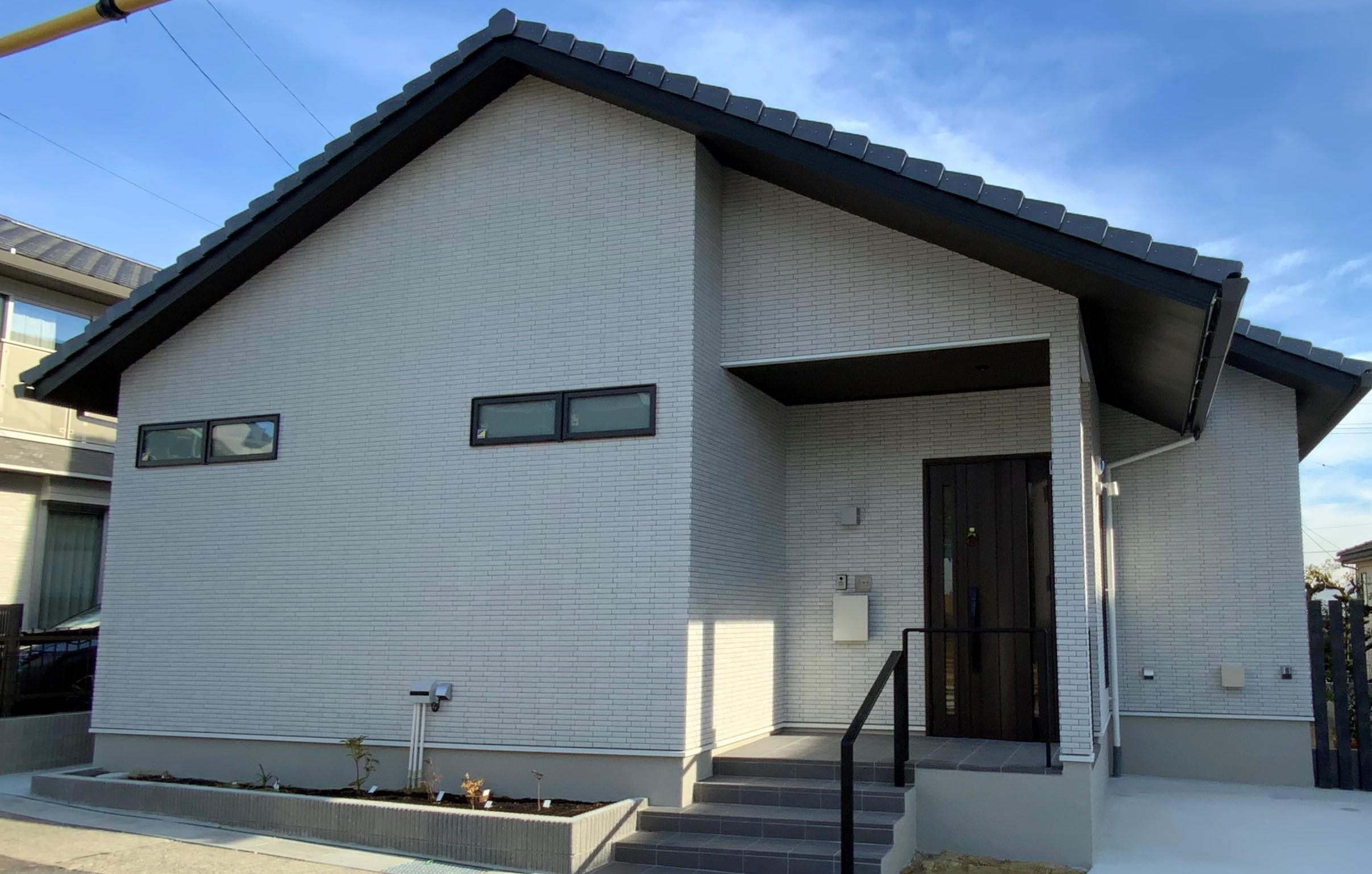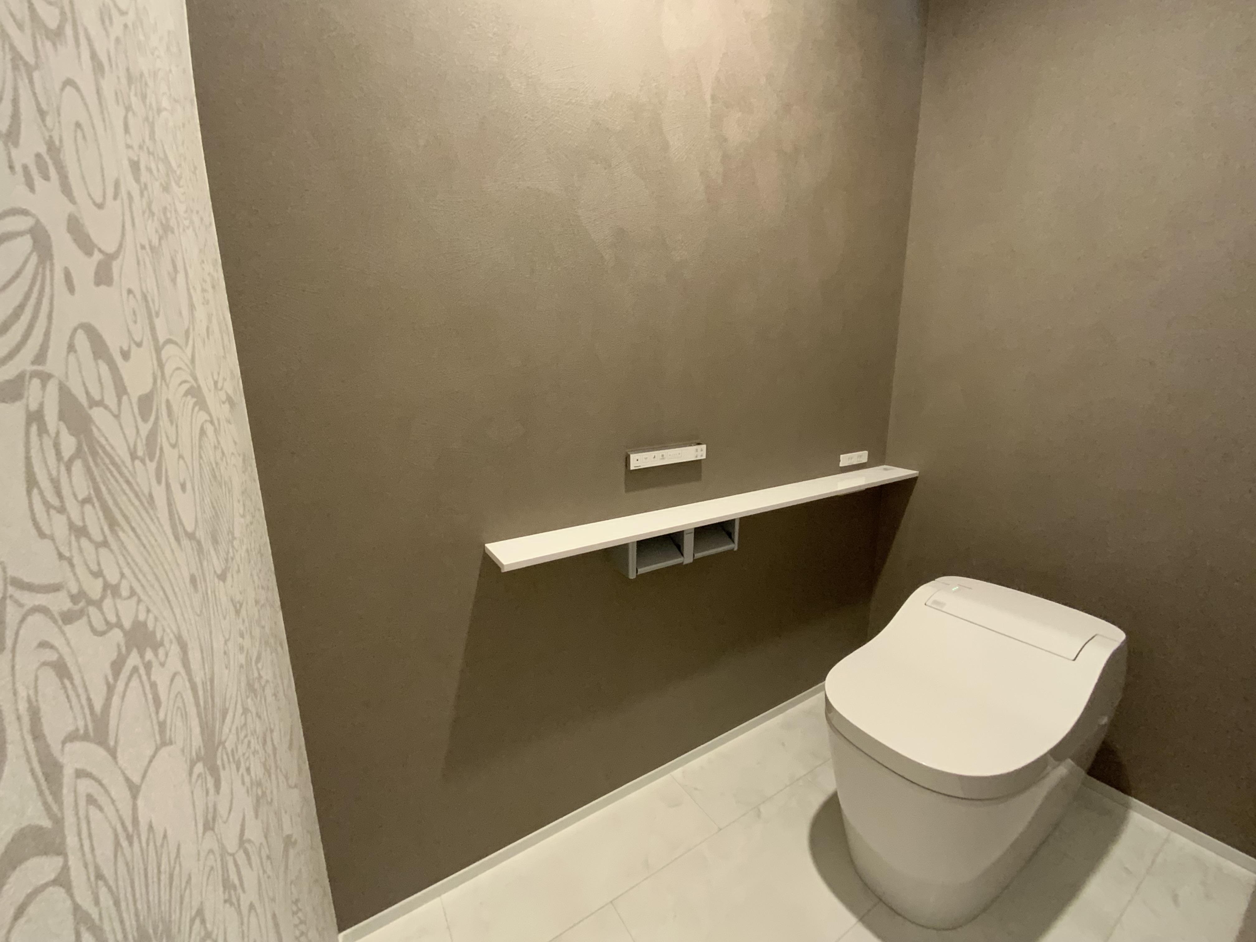 玄関正面の壁はLIXILエコカラットです。上部の間接照明をつけると陰影がつき、お洒落なデザインが浮かび上がります。自宅に帰ってくる度に気分が上がる素敵なご自宅が完成しました。