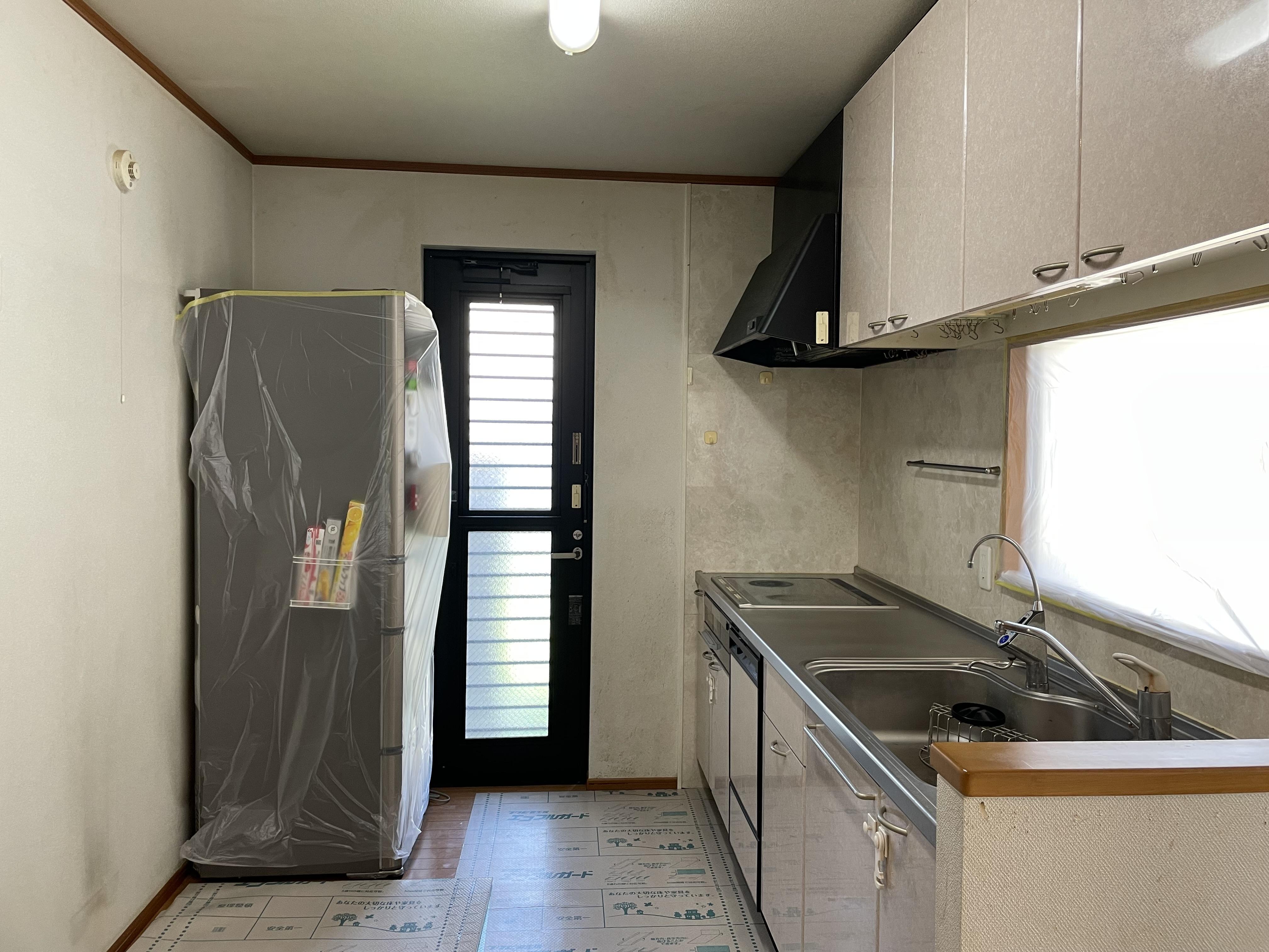 また、今回のキッチンリフォームに合わせて、キッチン横収納の扉を外しオープンにし新たに冷蔵庫を置くスペースになりました。