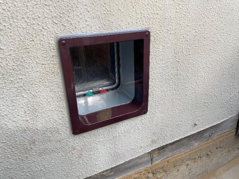 ご家族用のリフォームと一緒に施工した小さな猫用玄関は自由気ままにお出かけできます。