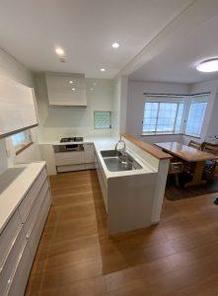 爽やかで明るいキッチンと温かみのあるフローリングで優しい印象に♪