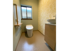 爽やかな壁紙とタンクレストイレですっきりとした空間に