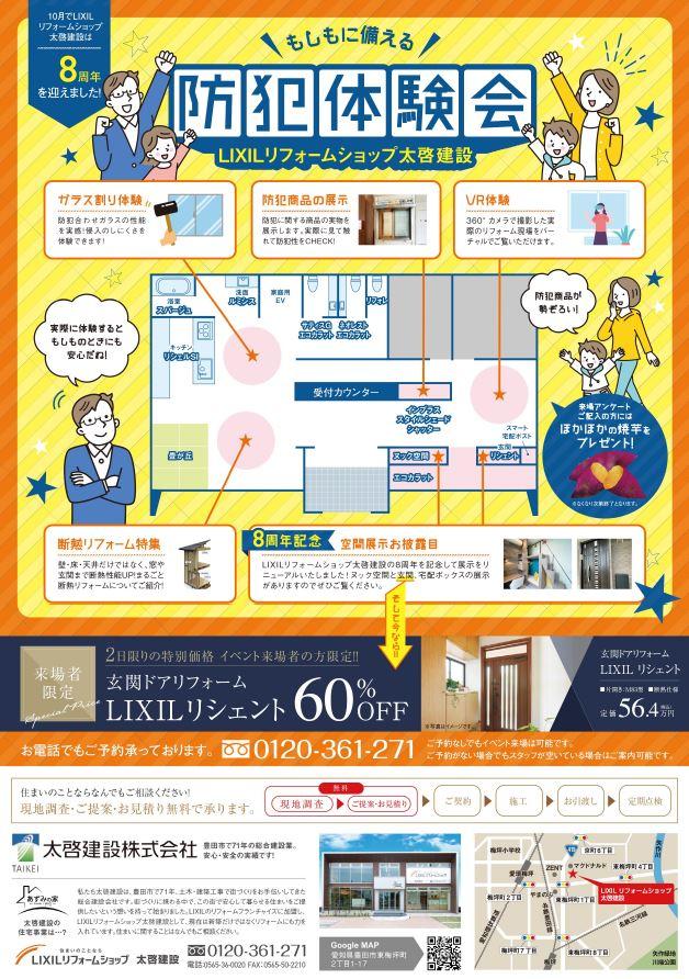 防犯商品の展示(玄関扉、内窓、シャッター、防犯ガラス等)をしています。