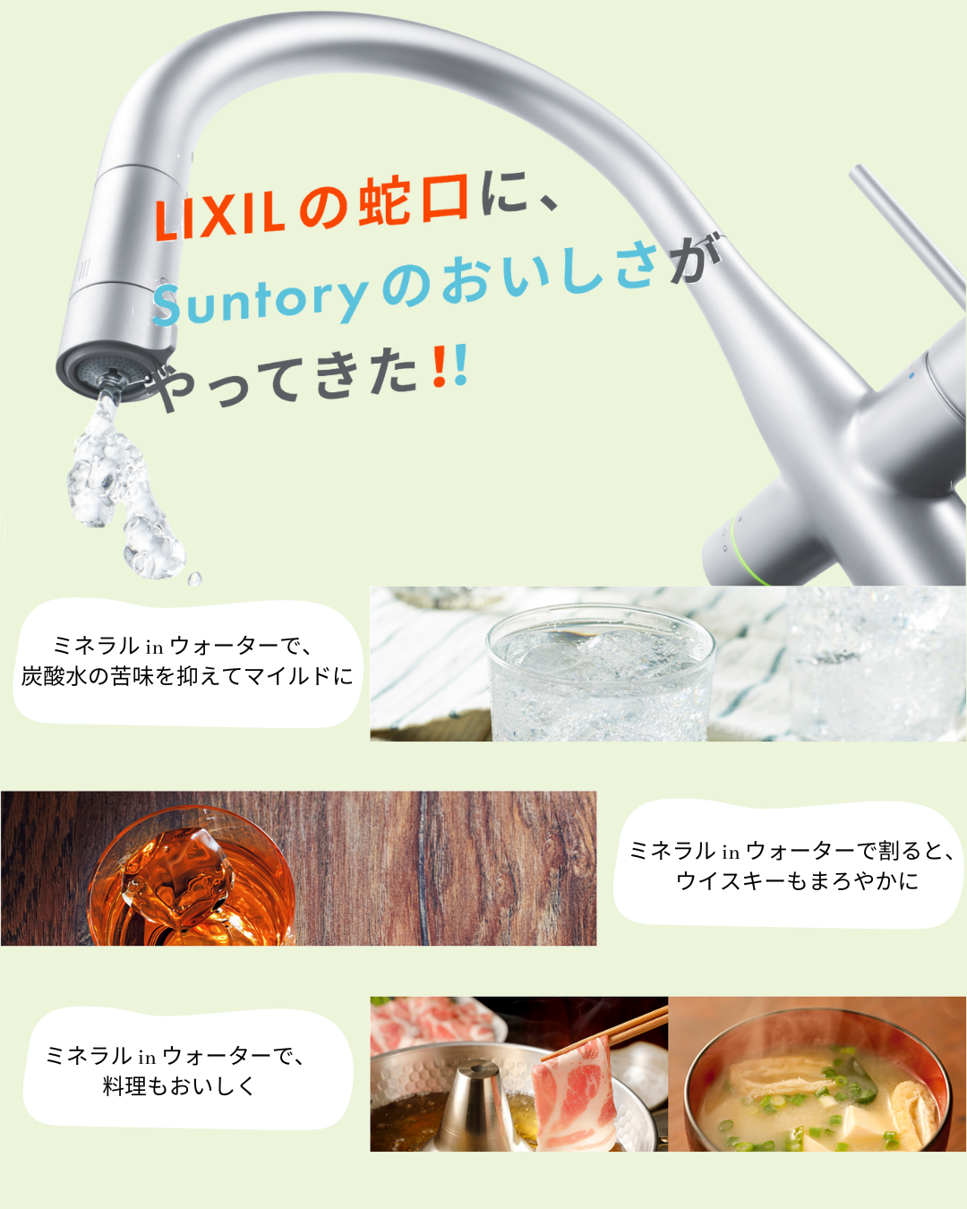 LIXILの浄水技術とSuntoryのミネラルエキス技術から生まれた新しいサービスです。