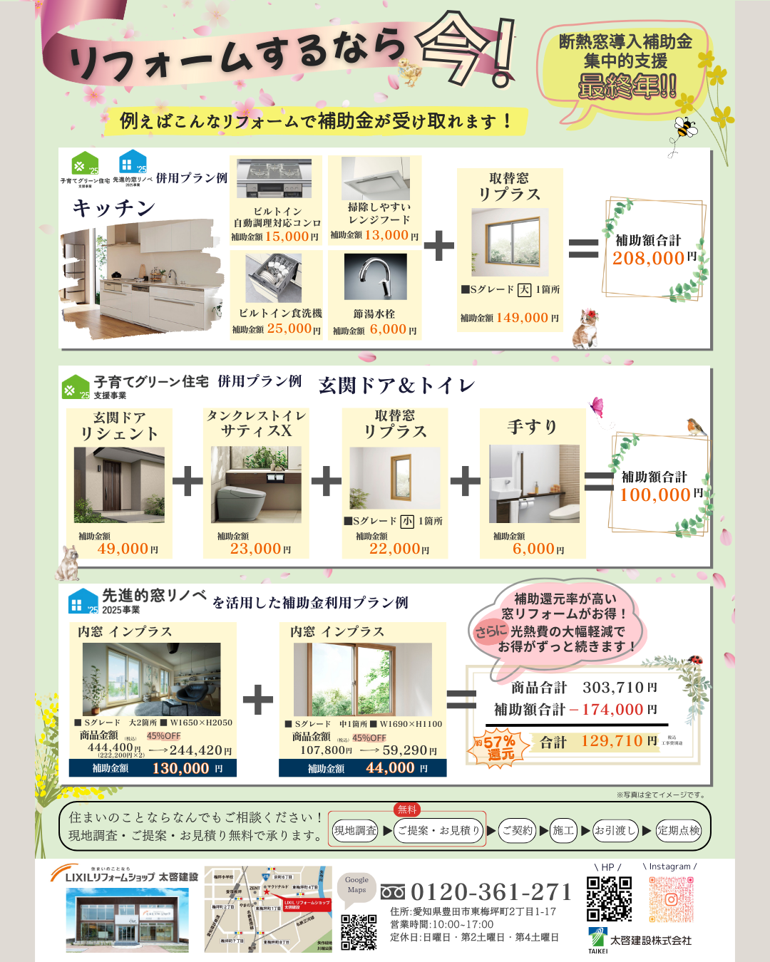 チラシ画像に補助金を活用したプラン例をご紹介していますので、ぜひご参考になさってください♪