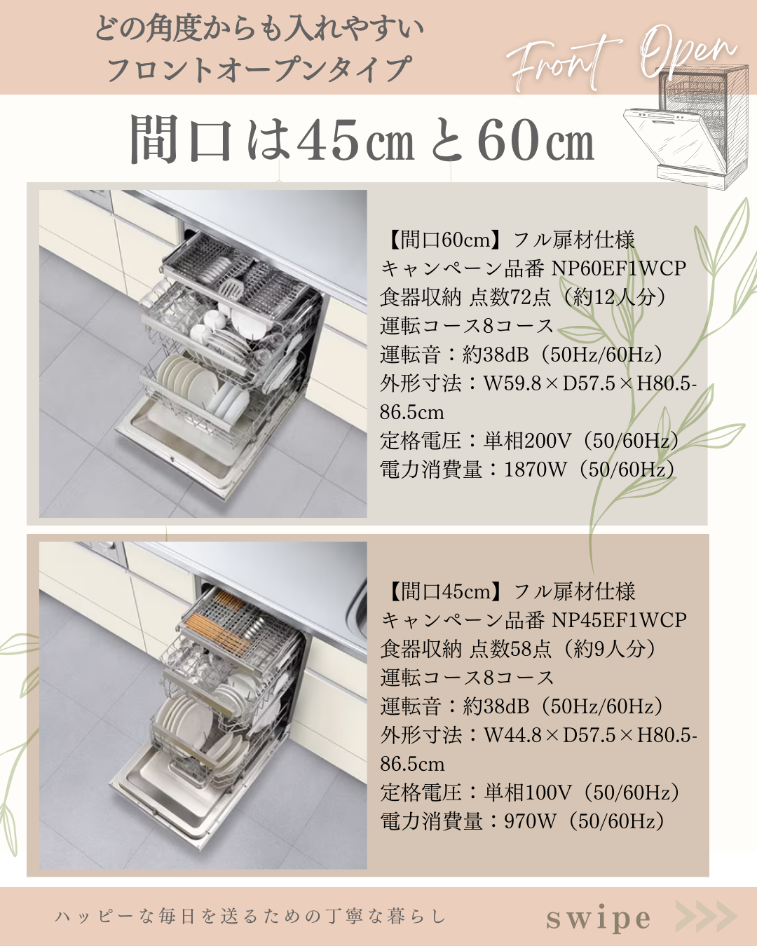 パナソニック製食器洗い乾燥機フロントオープンタイプをセットでご成約いただいた方は