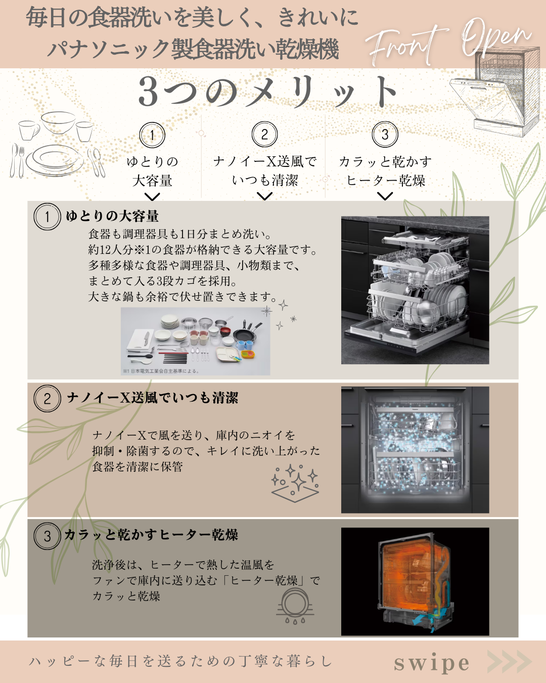 ☆パナソニック製食器洗い乾燥機フロントオープンタイプの3つのメリット☆