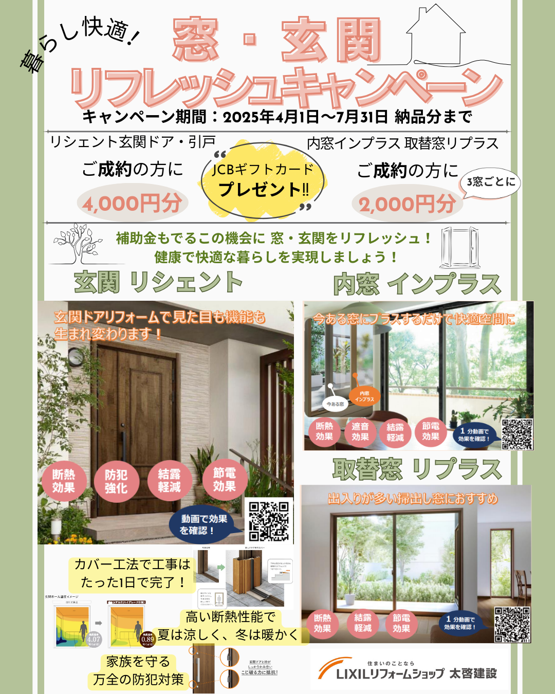 ◆内窓「インプラス」取替窓「リプラス」をご成約の方に3窓ごとにJCBギフトカード2,000円分