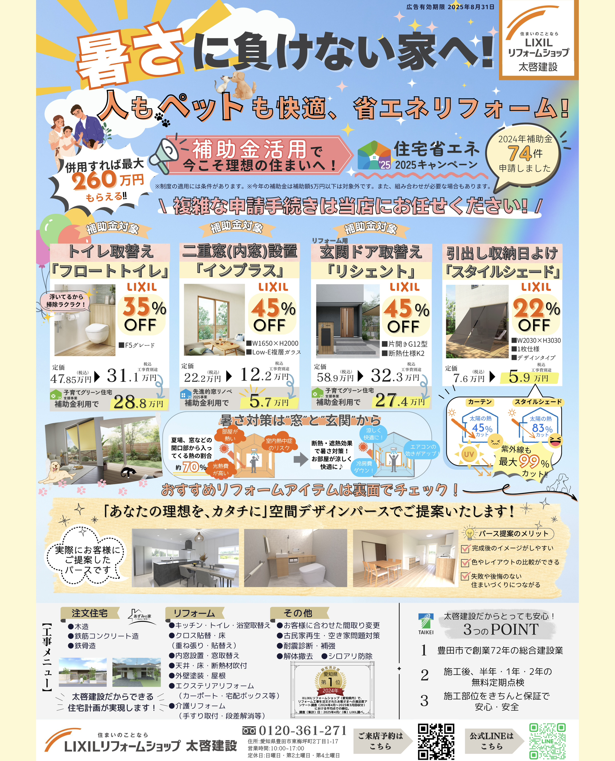 今なら補助金を活用して、お得にリフォームできるチャンスです!