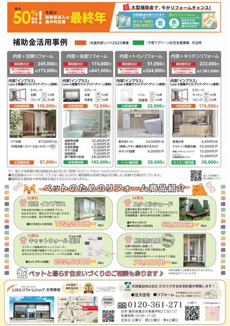「子育てグリーン住宅支援事業」「先進的窓リノベ2025事業」など、対象工事を行うと最大で260万円の補助を受けられるチャンス