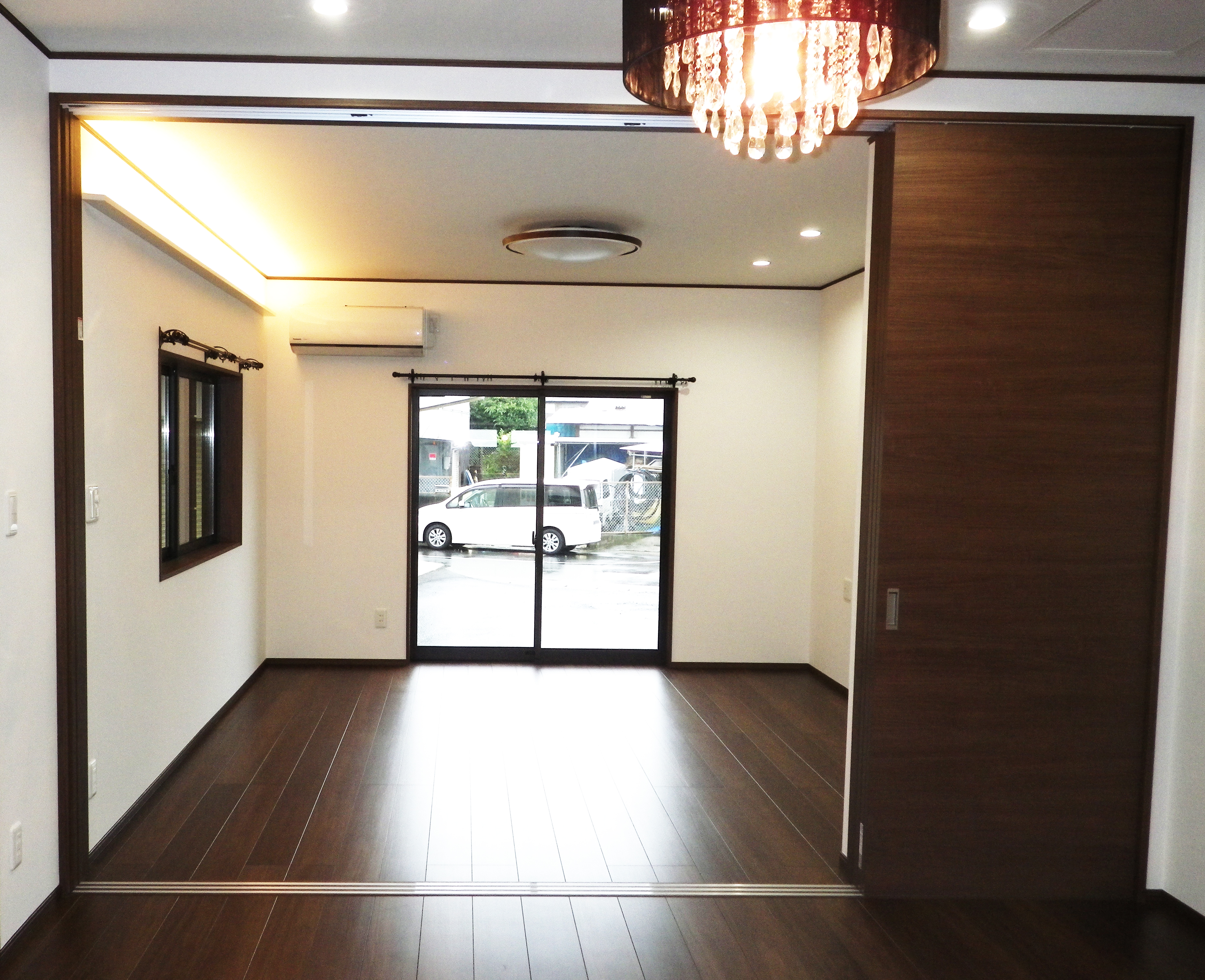 もともとは和室だった部屋を洋室へ改装し、ダイニングからの続きとして広々と使えますし、可動間仕切りでリビングとして単独の空間ともなります。20帖という広い空間ですが、断熱窓を採用しているので夏は涼しく冬は暖かくなり、間接照明が柔らかい光で家族団欒の時を照らします。