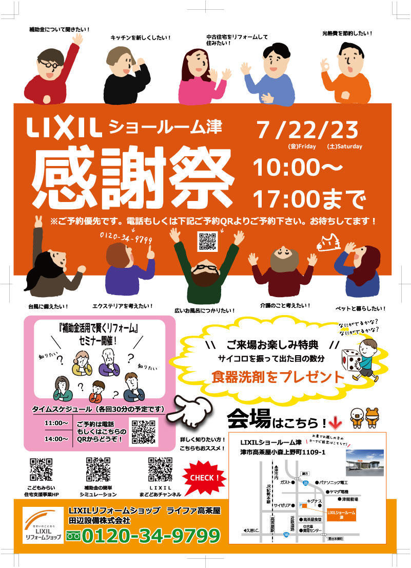 開催場所:LIXILショールーム津 〒514-0816 三重県津市高茶屋小森上野町1109−1