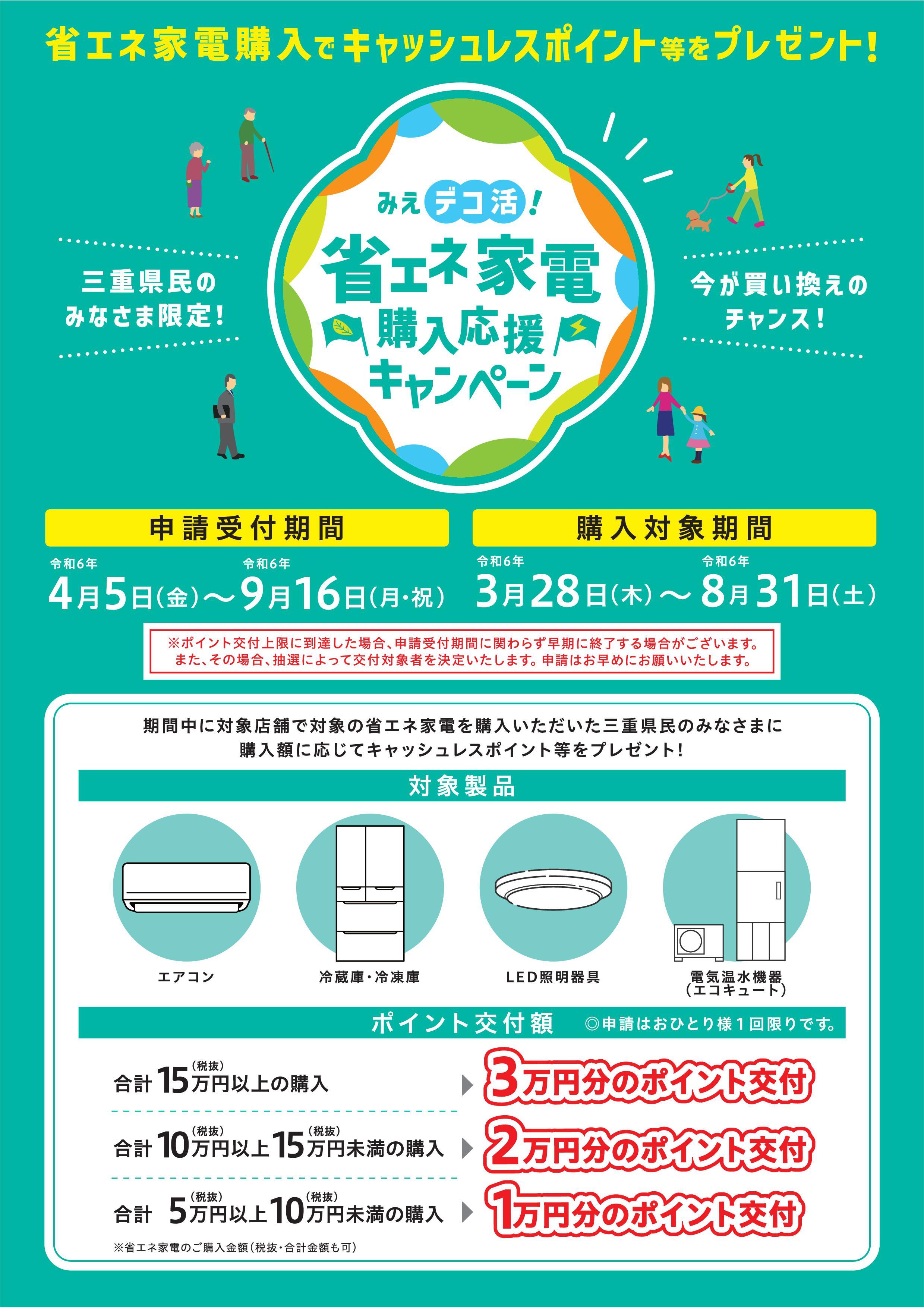 三重県独自の【みえデコ活!省エネ家電購入キャンペーン!】をご存じでしょうか?