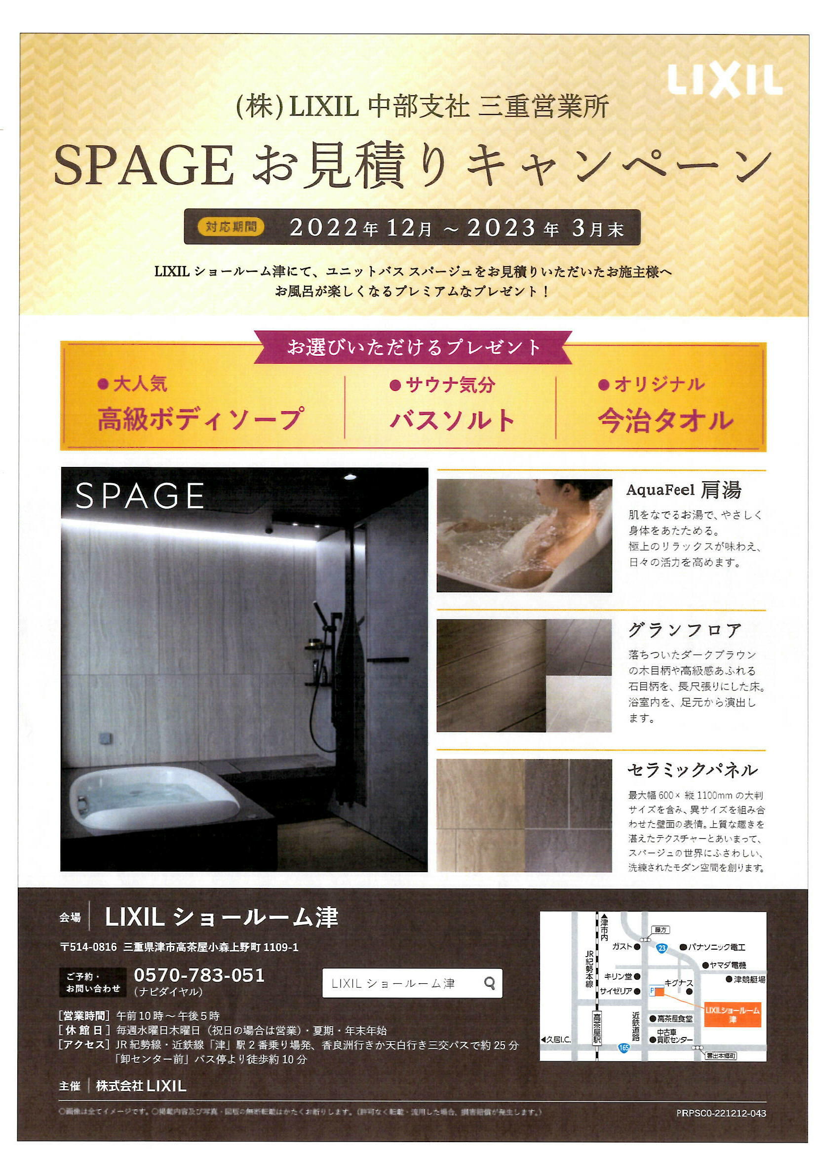 LIXILが誇る最高級ユニットバス【スパージュ】のお見積りをショールームで依頼すると素敵なプレゼントが今ならもらえます!