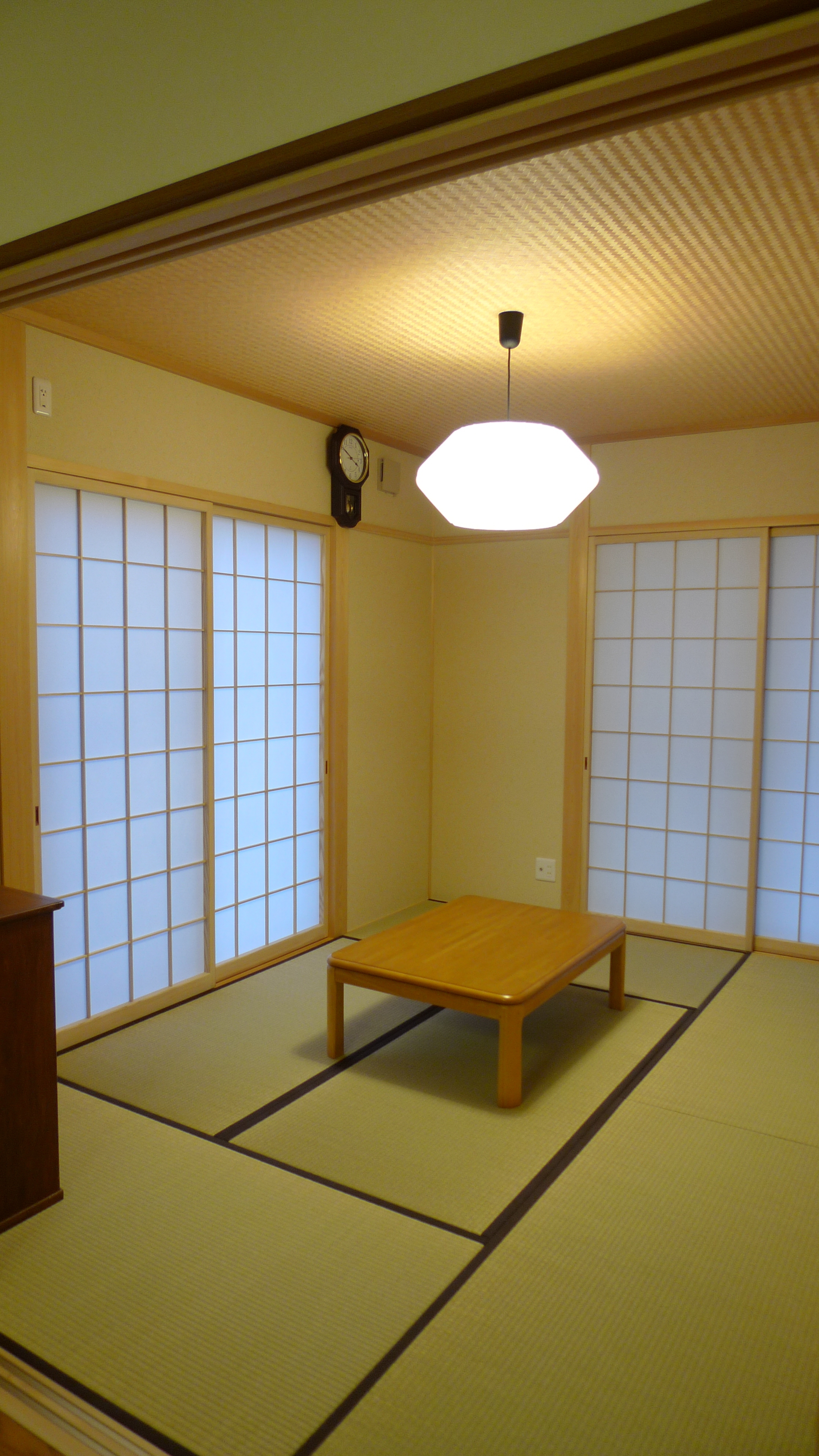 和ならではの障子を貼り替えなくてもいいようにワーロン紙で作りました。やっぱり畳に障子は落ち着きます。