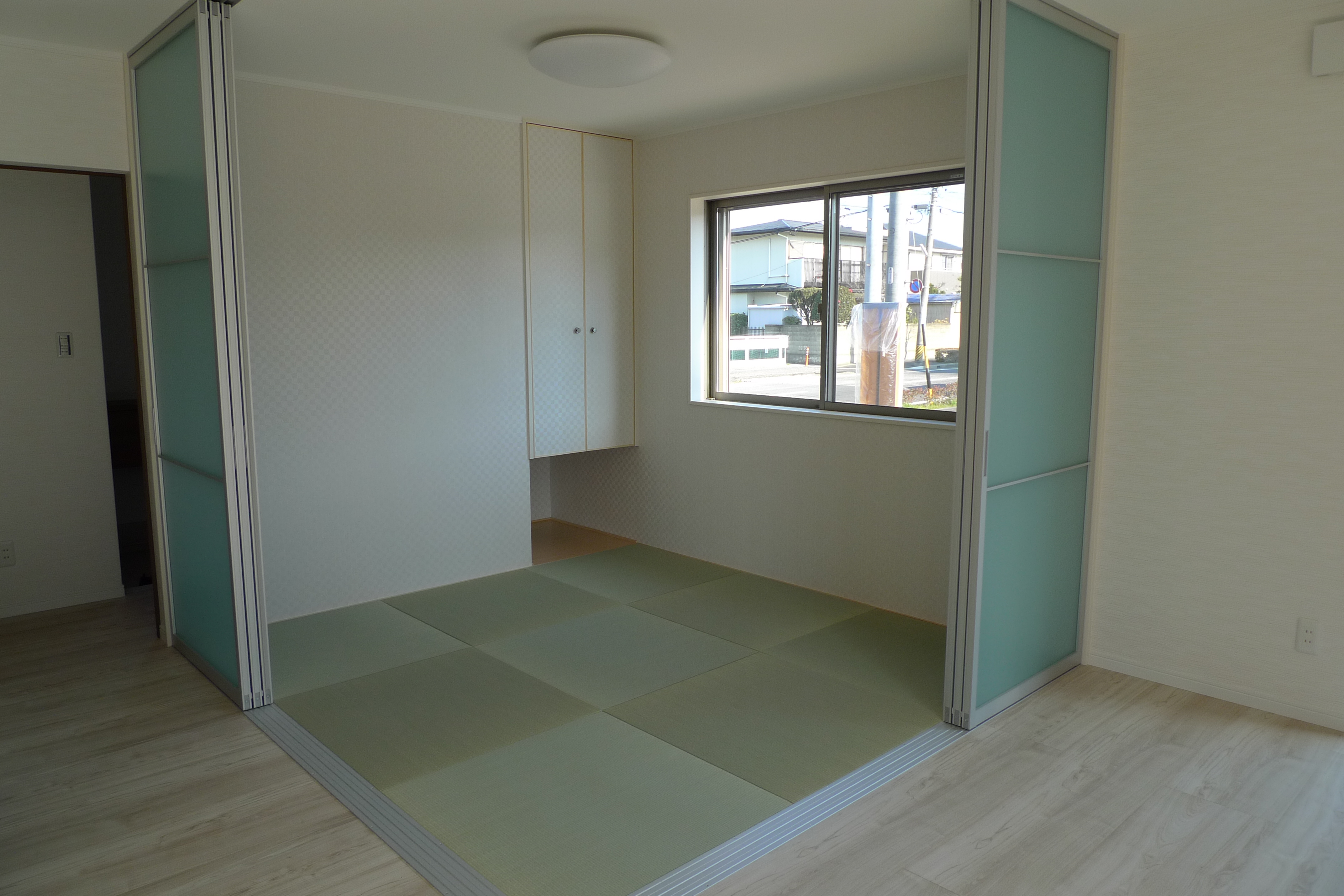 リビングの一画に畳コーナーを作りました。まだ若いご夫婦なので、1才の子供さんのお昼寝やおもちゃで遊んだりと、多様に使えそうです。