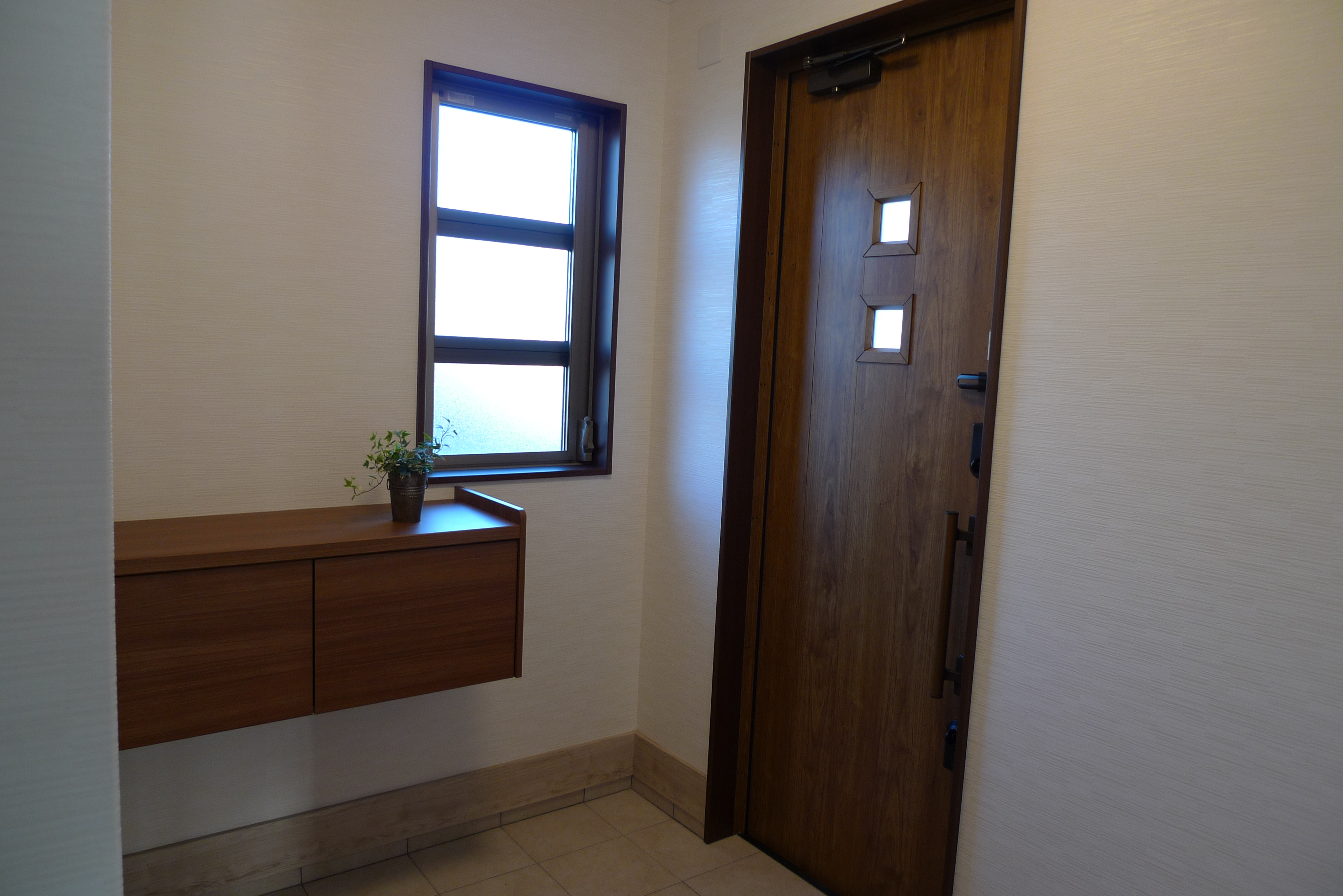 玄関入ったつきあたりには、たっぷり収納できる玄関収納!だから玄関がこんなにすっきり!!