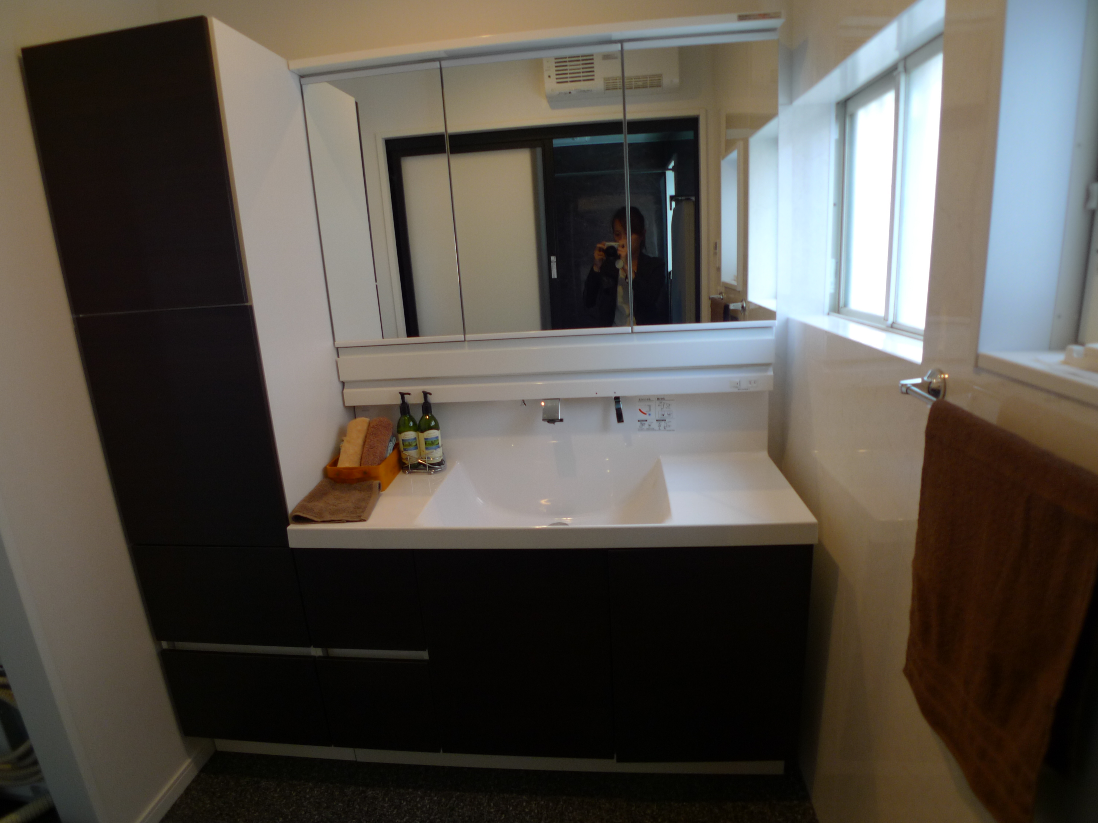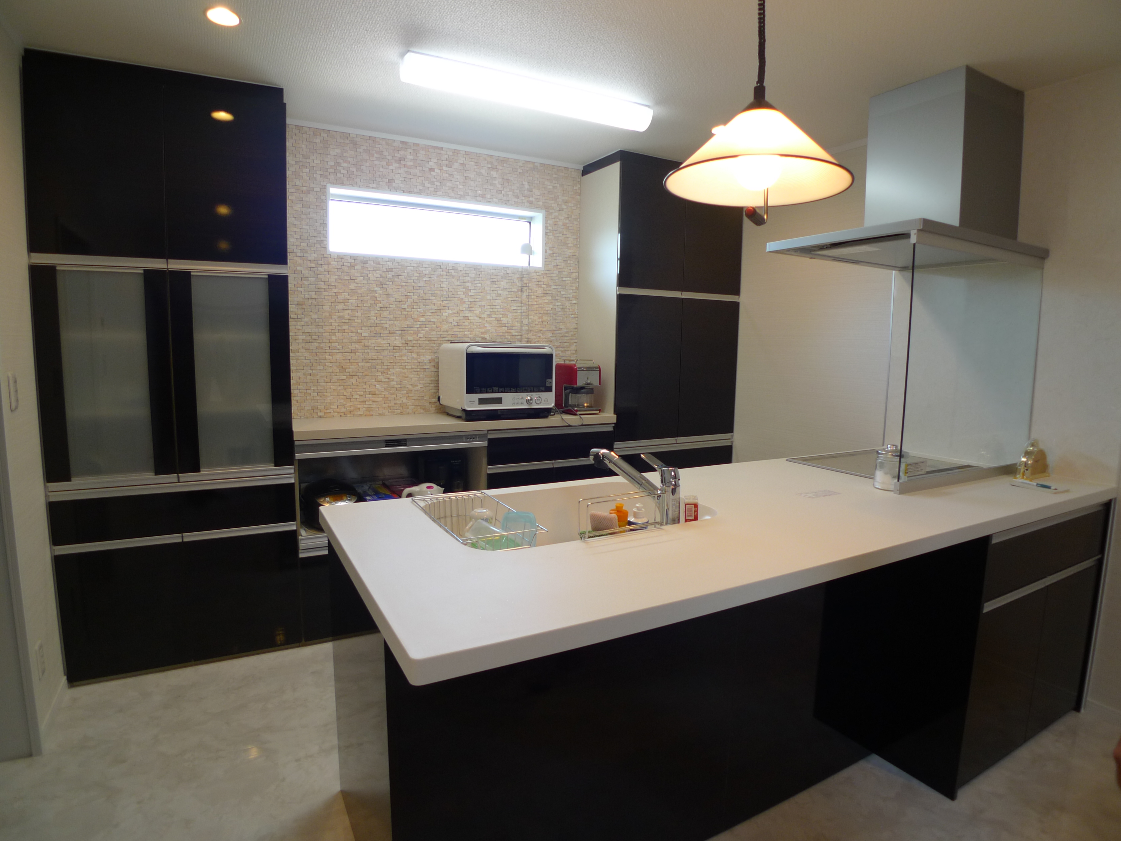 キッチンをリビングに移設させ、洗面所には家事スペースを併設、バリヤフリーにも配慮しご夫婦が老後をすごされるようになったも快適にすごしていただける空間になるよう提案させていただきました