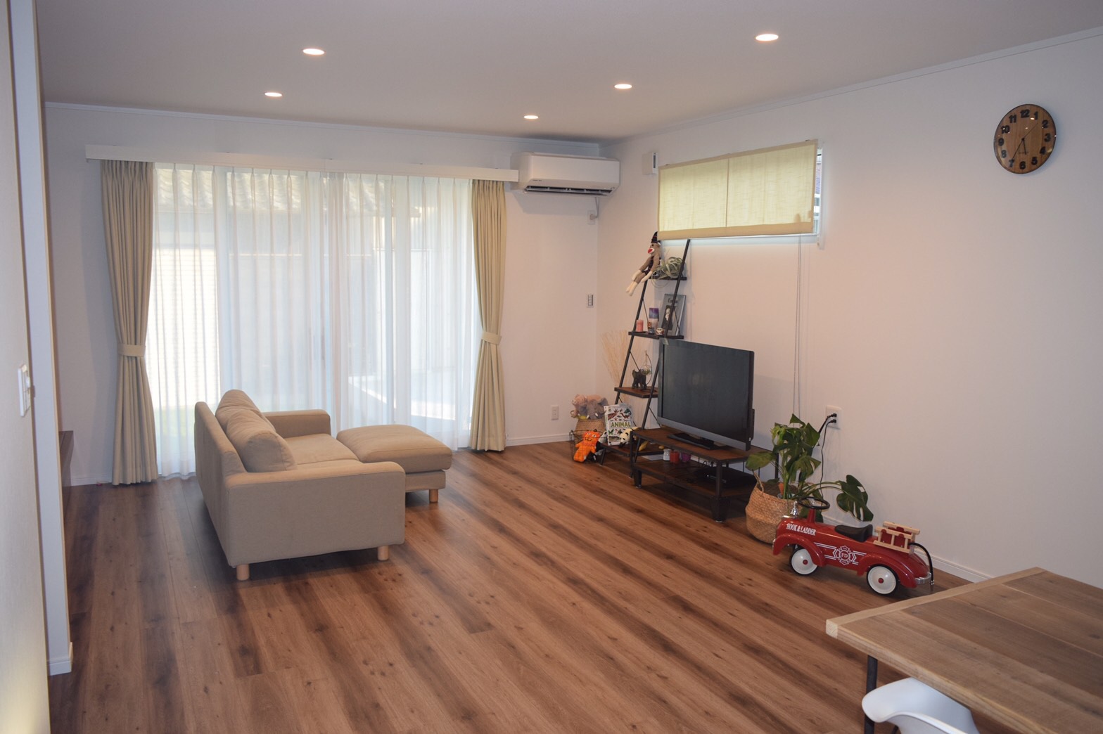 まだ小さな子供の成長を見守れながらも、子供が巣立った後も自分たちが快適に過ごせる家が希望でした。 今はこどもの遊び場になっている畳スペースは取り外しできるようになっているので、もし不要にかんじた時には取り外しリビングを広く使えるようになっているのがありがたいです。 LDKと浴室&洗面が繋がっているのも家事動線が短くなり快適です。