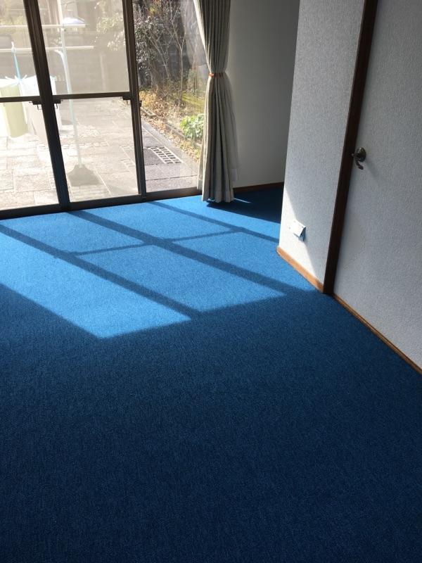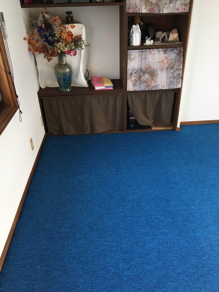 お部屋の雰囲気を替えたいとご相談いただきました。悩まれた末、絨毯を青に変更。とっても素敵な空間になりました。