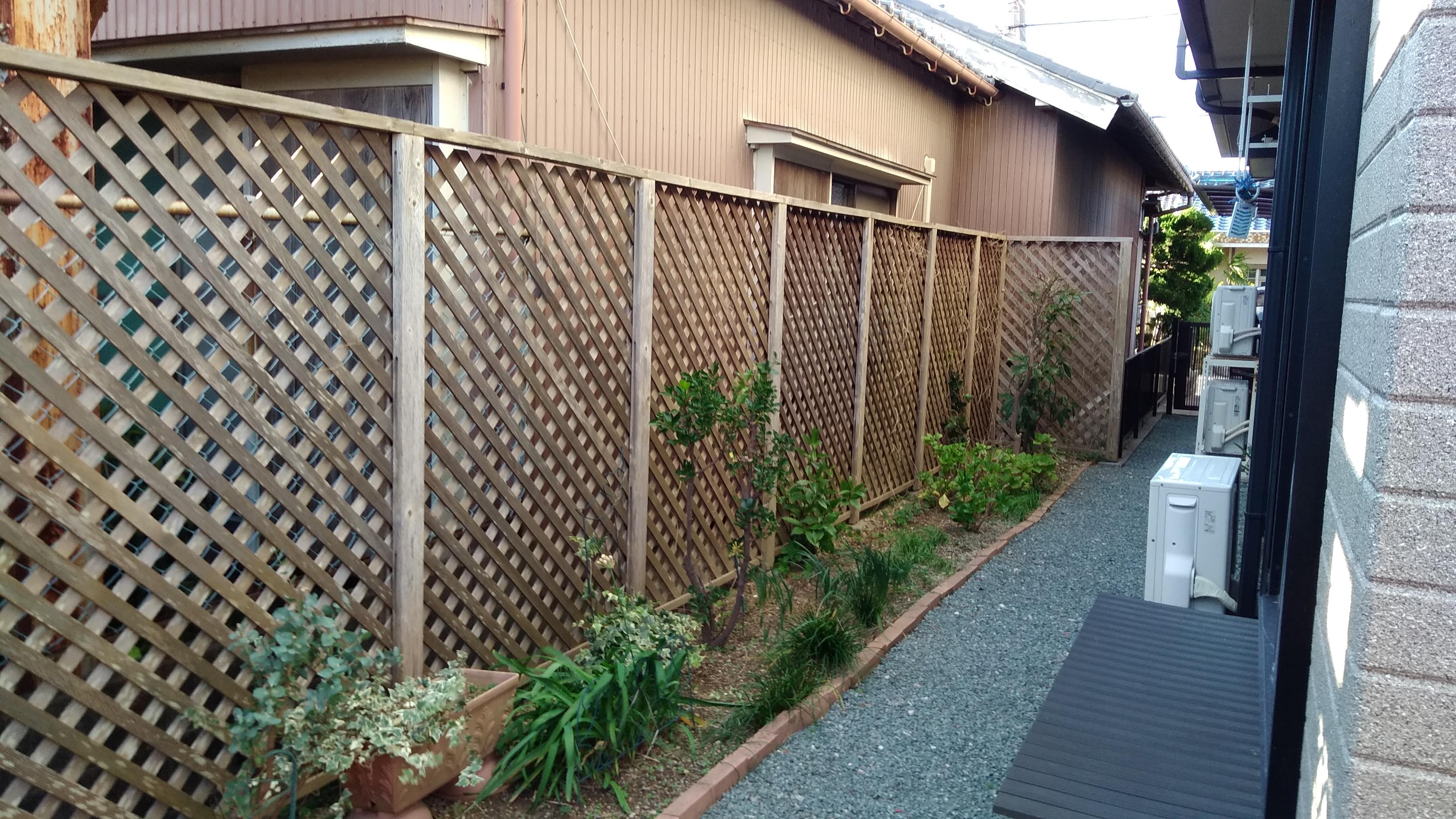 板塀を新しくしたことで、花壇のグリーンも活き活きと見え、お隣からの目隠しもばっちり! 大変喜んで頂けました。