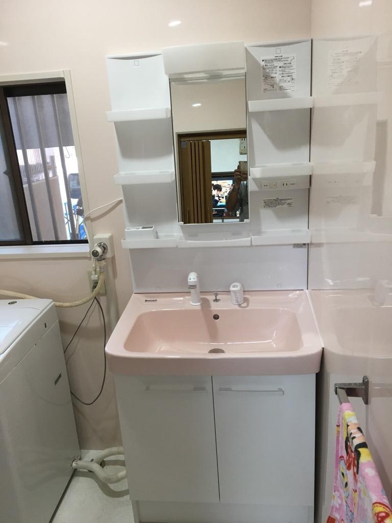 以前よりカビが気になっていた洗面室。湿気が多い場所なので、一度カビが生えると駆除するのはなかなか困難です。カビが発生すると見た目の悪さだけでなく、アレルギーなどの問題も!今回のリフォームでは、今後カビを増殖させない、お掃除のしやすい環境作りを重視し、壁全体にタフウォールを貼りました。これなら水が飛んでも壁に吸収されず、さっと拭き取るだけ。お部屋全体を白で統一、更にタフウォールの表面は光を反射する為、以前より明るくなって奥様も大満足していただけました。