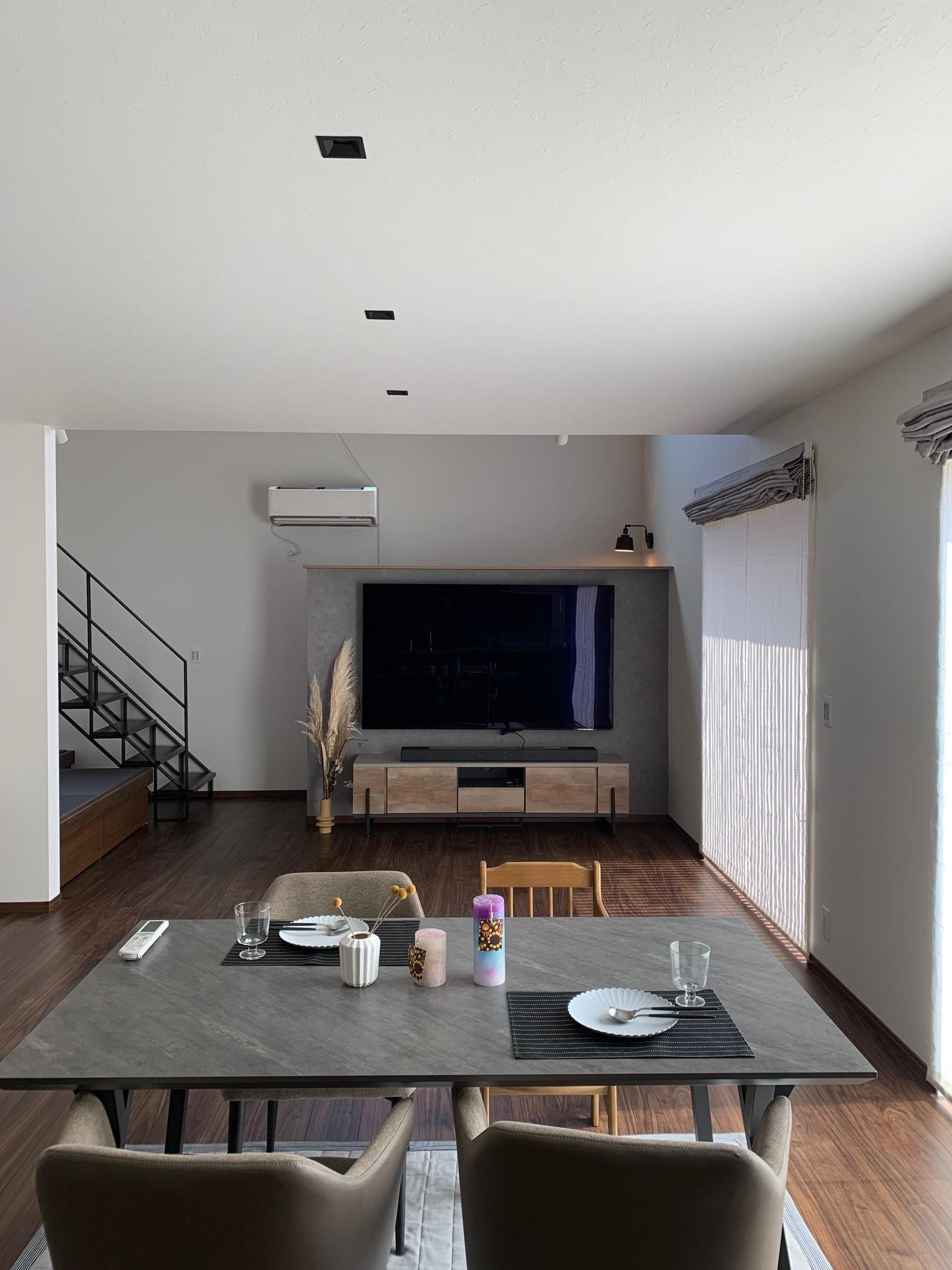 最高におしゃれで素敵なお家が出来ました。 写真では伝えきれませんでしたが、照明のスイッチ一つをとってもご家族のこだわりが詰まっています! ご家族にも喜んでいただけて、良かったです。 これから完成するこだわりの外構も楽しみですね!