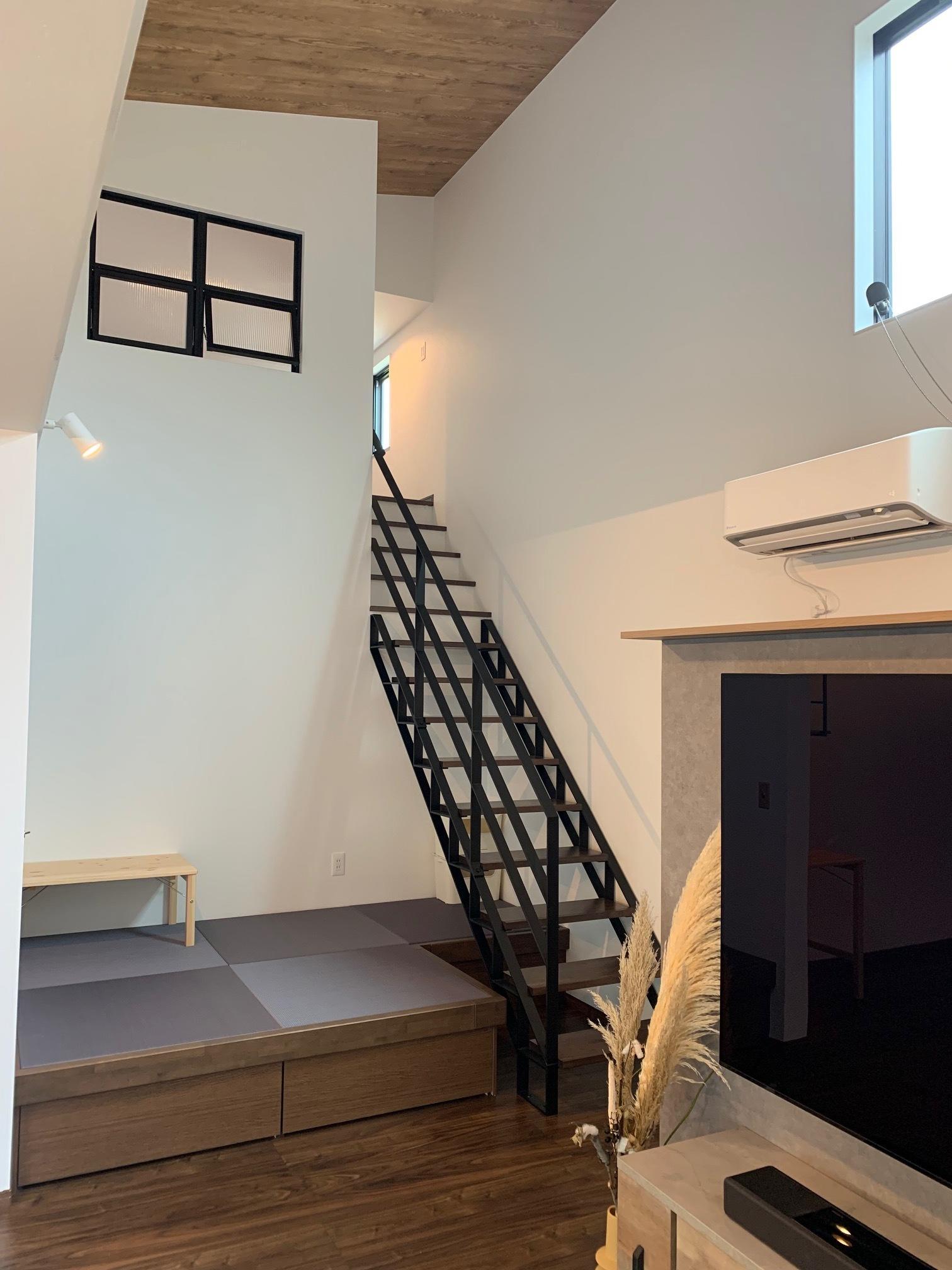 こだわりのアイアン階段の上にはご主人様の趣味部屋を作りました。