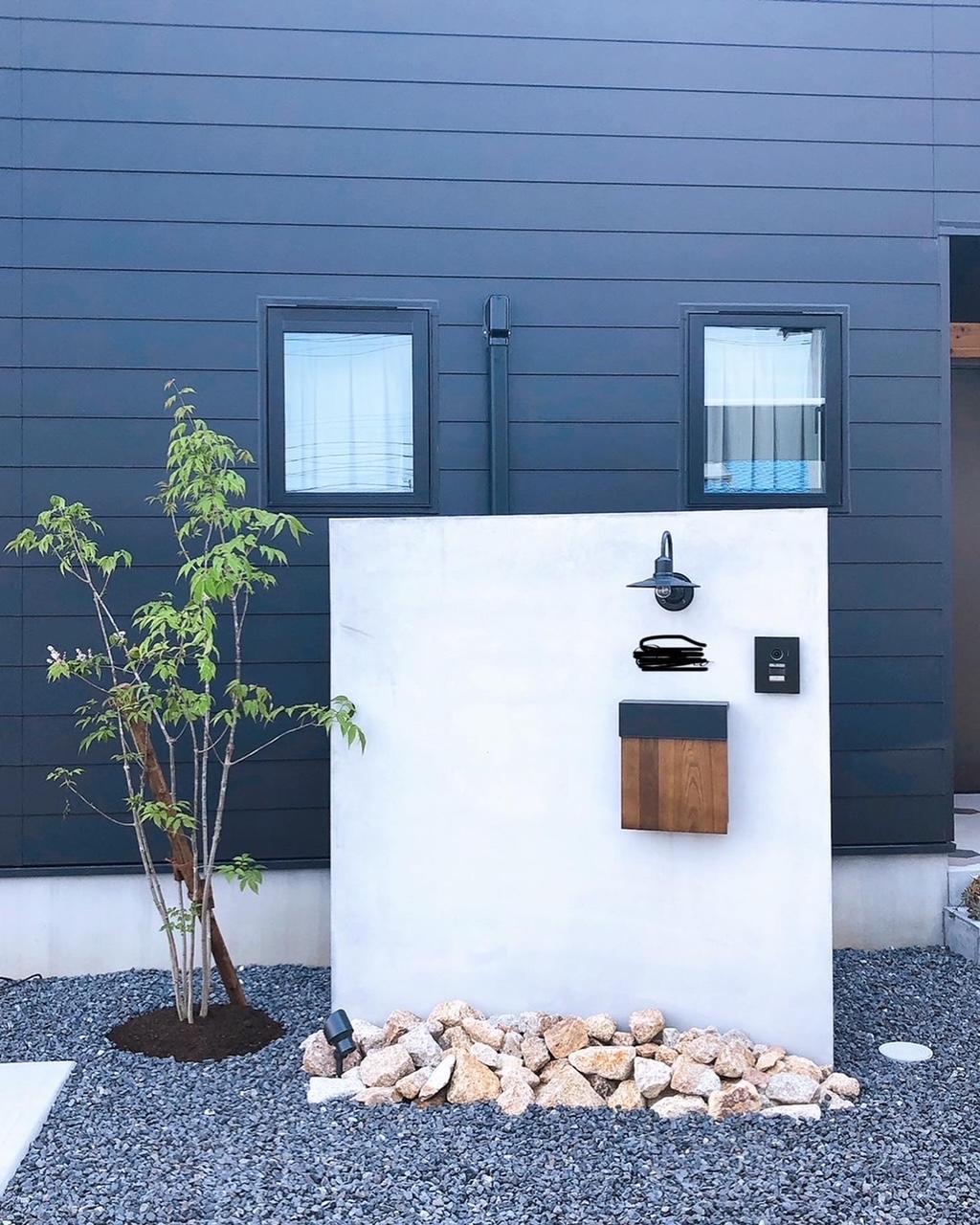 ガルバとの相性が最高なモルタル塗りの門塀。 室外機の目隠しも兼ねています。