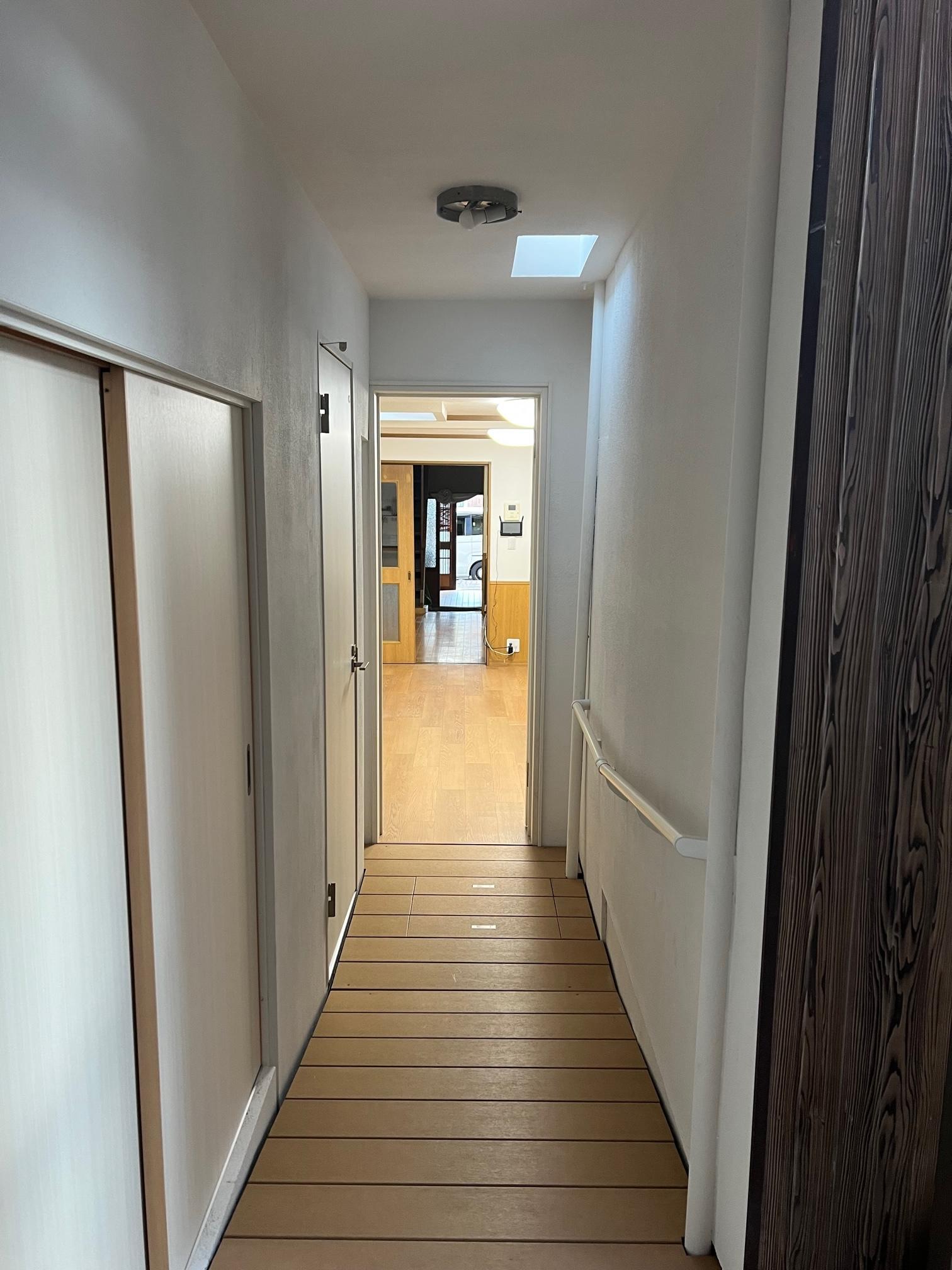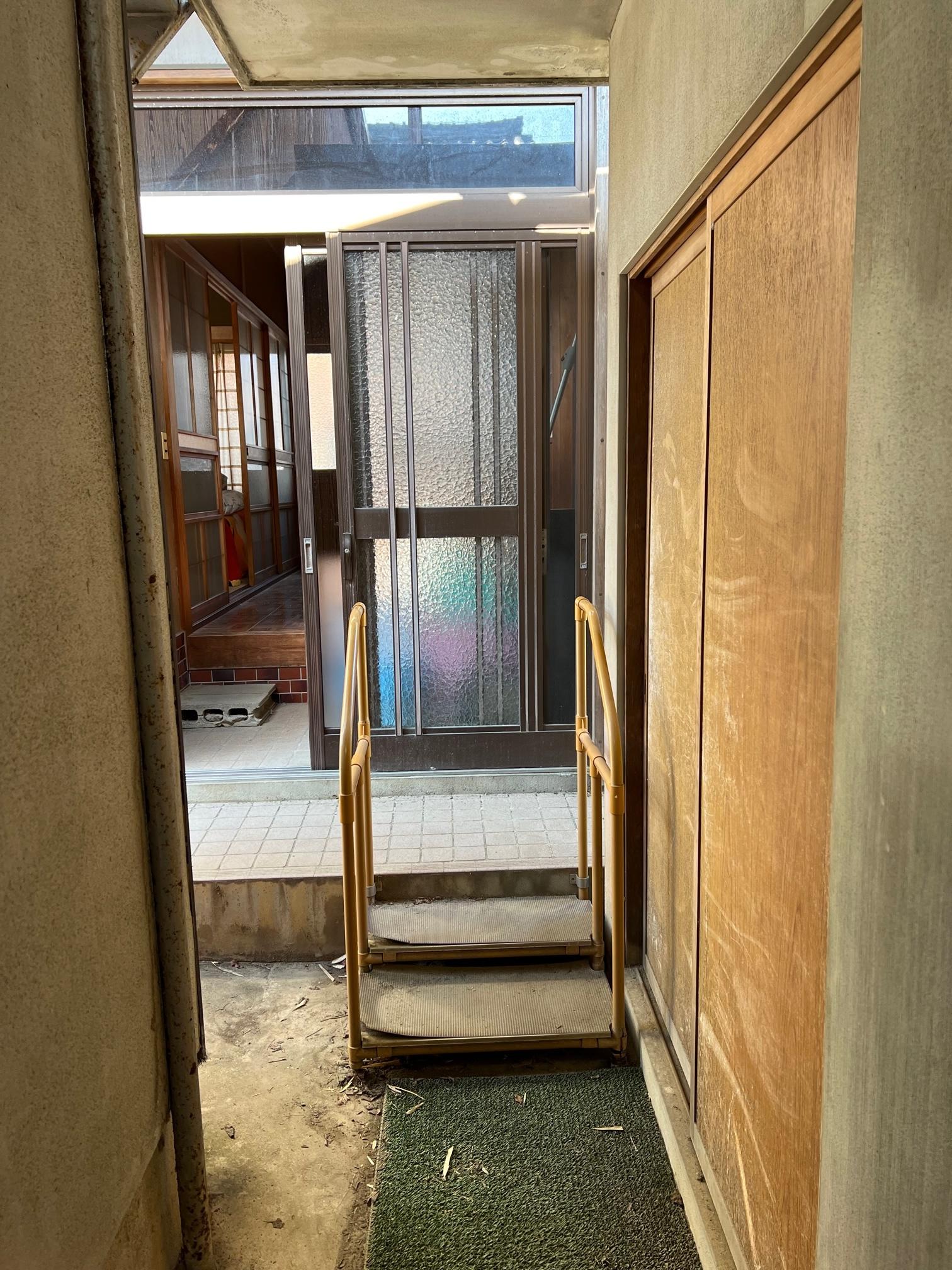 トイレや奥にある増築部に行くまでが外になるため、靴を履き替えないといけないという煩わしさがありましたが、廊下部をスリッパのまま行けるように床上げをし、雨が入らないように屋根を作ることで解消することができました。