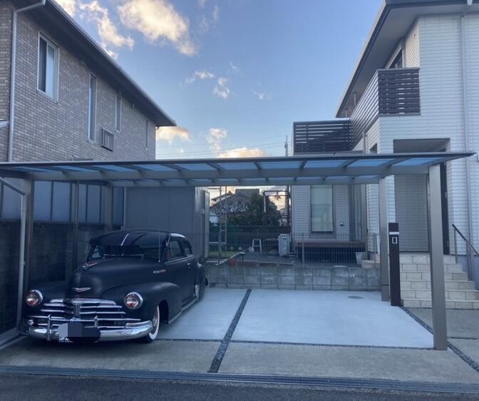 一部砂利だったところもコンクリートをひき、車も自転車も駐車しやすくなりました! カーポートがあれば雨の日でもストレスなく出入りできます。 自転車に荷物を乗せたり、カッパを着たりもストレスフリーですね♪ 大事な愛車も守れます!