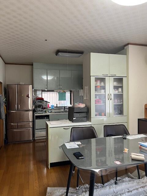 キッチンダイニングから和室へ入るドアは引き込めるようになっていて、開けるとつながるように。