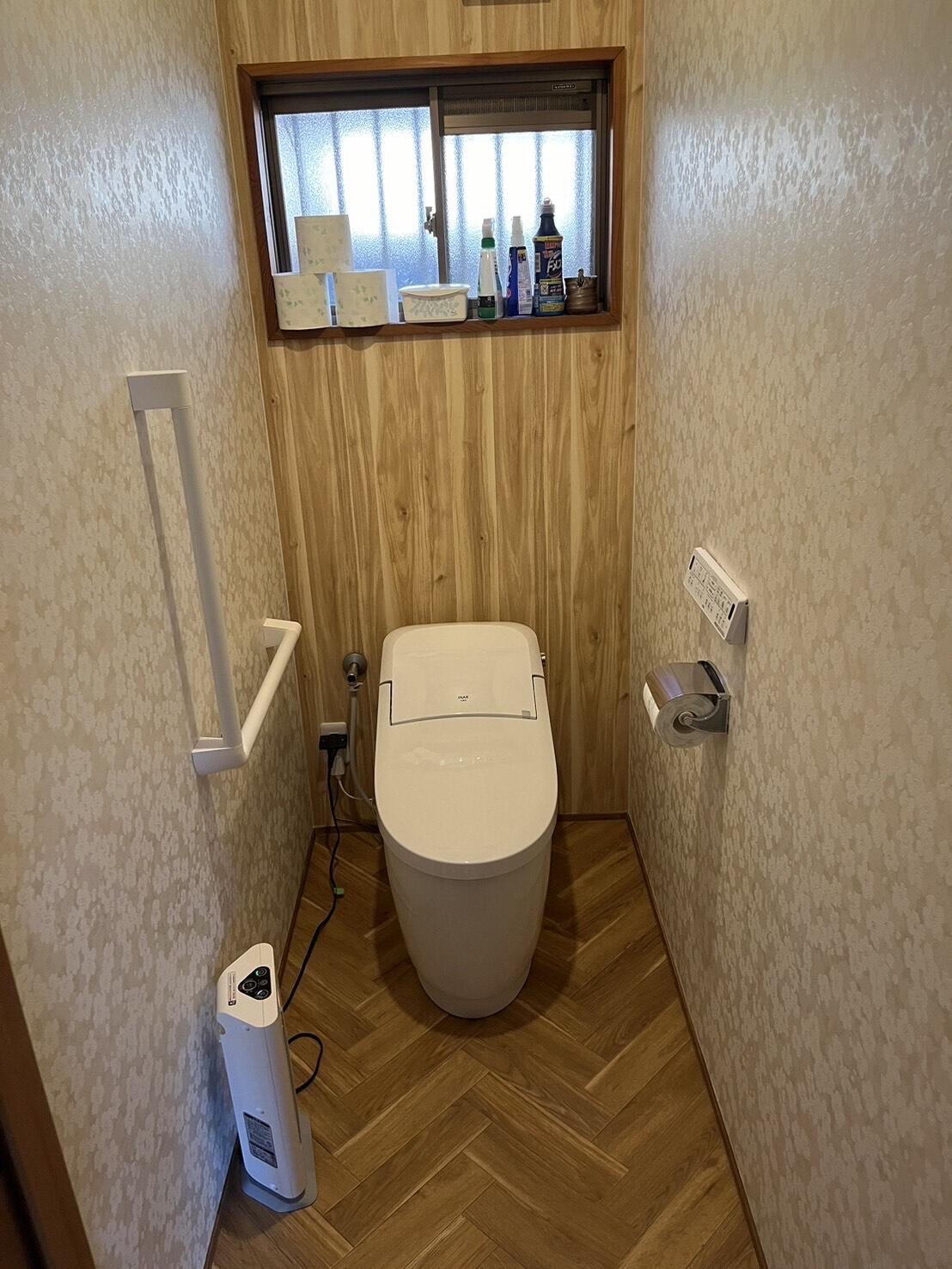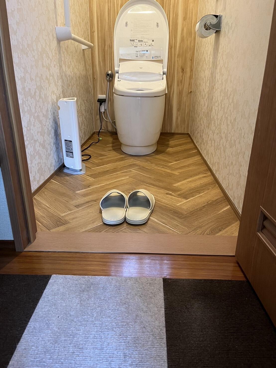 開口も広くなり、段差も解消。 手すりも設置しバリアフリーなトイレで今後も安心です。 内開きだったドアも外開きへリフォーム。 外開きにすることで、トイレ内で人が倒れたり緊急事態が発生しても助けに入りやすくなります。